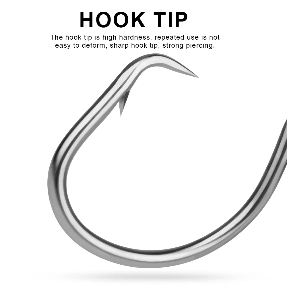 5개입 해수 낚시 참치 서클 훅, 초강력 스테인리스 스틸 대물 낚시 훅 (참치, 전선어, 상어용)