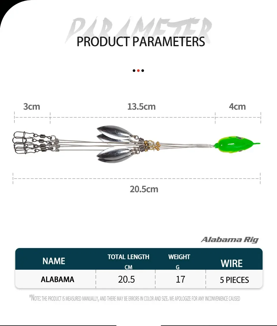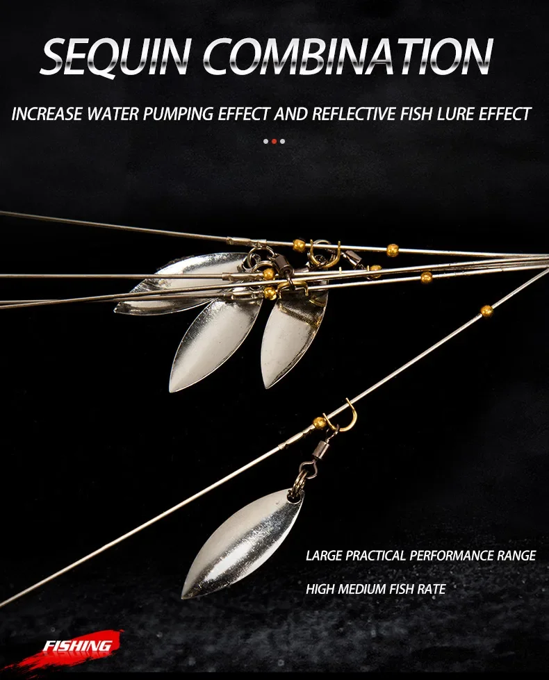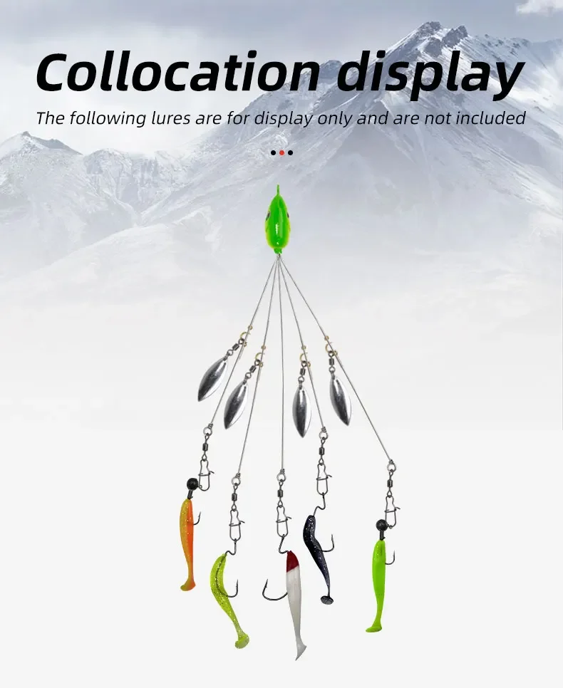 【DETALLES DEL PRODUCTO】:Paragüero con 5 brazos y 4 hojas de sauce, 20cm de largo desde la punta de la cabeza hasta el final del brazo. Este aparejo Alabama permite a un pescador entregar múltiples señuelos en un solo lanzamiento. Puedes pescar más de 10 libras a la vez porque la plataforma de Alabama es extremadamente efectiva para atrapar lubinas monstruosas. Gran elección tanto para agua dulce como salada.