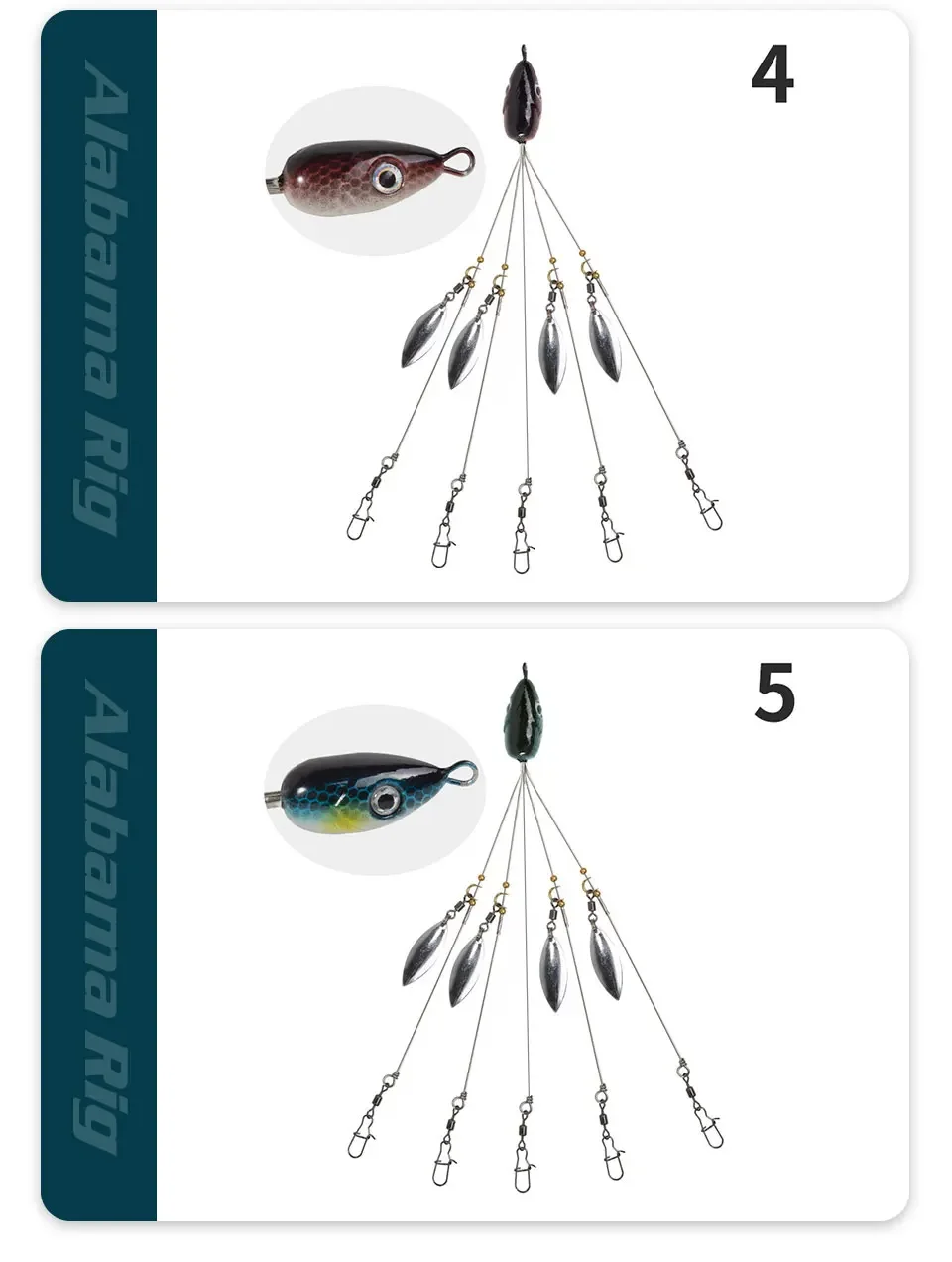 5 brazos 4 palas Alabama paraguas aparejo pesca lubina señuelo natación cebos aparejo agua salada aparejos de pesca
