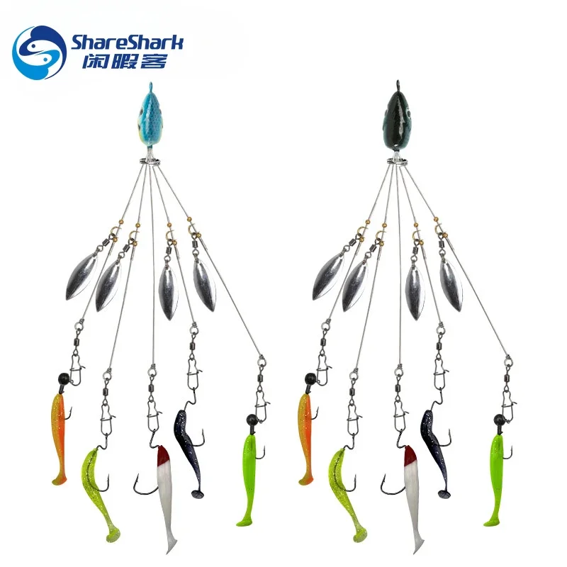 5 brazos 4 palas Alabama paraguas aparejo pesca lubina señuelo natación cebos aparejo agua salada aparejos de pesca