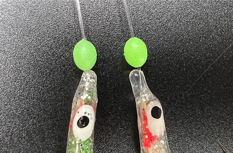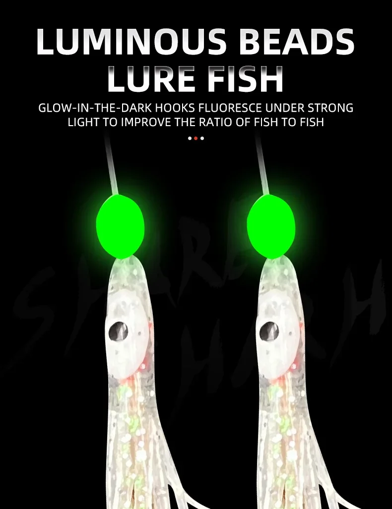 【Brilla en la oscuridad】:Las cuentas de pesca luminosas y la pluma de caballa intermitente brillan en la oscuridad, son más atractivas para su objetivo mientras pesca.