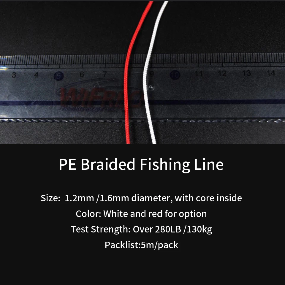 5 metros 22# Línea de pesca trenzada de PE de 1,2 mm, línea trenzada súper fuerte para anzuelo de plantilla, líder, conexión de lanza, pesca de buceo, etc.