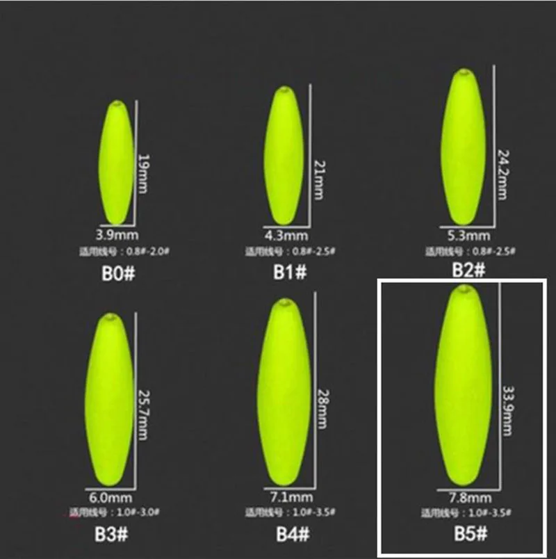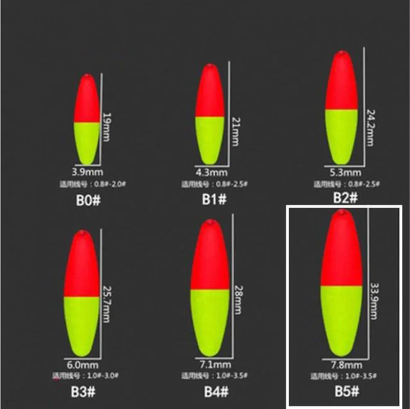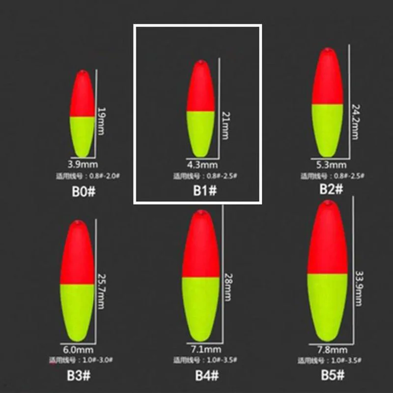 5 paquetes/lote de flotador de pesca Bobber de siete estrellas de alta calidad, 2 tamaños, frijoles flotantes, 8 colores, cuentas llamativas con agujero A437