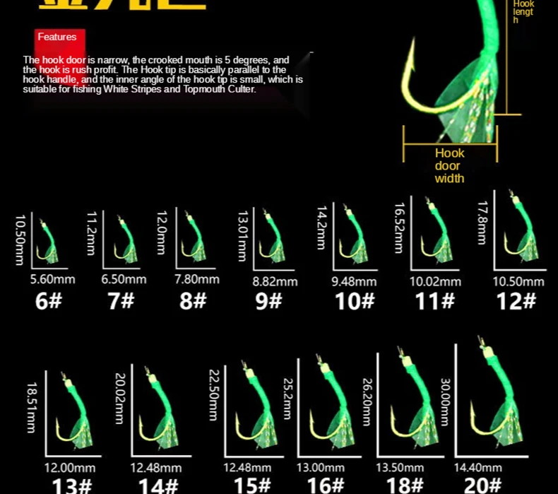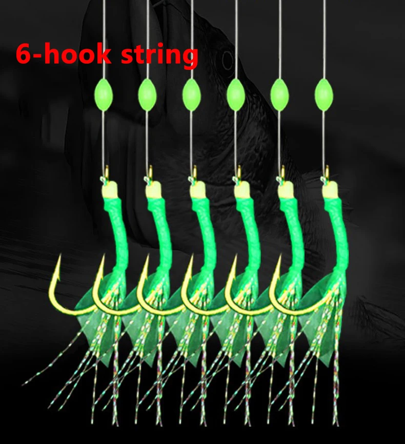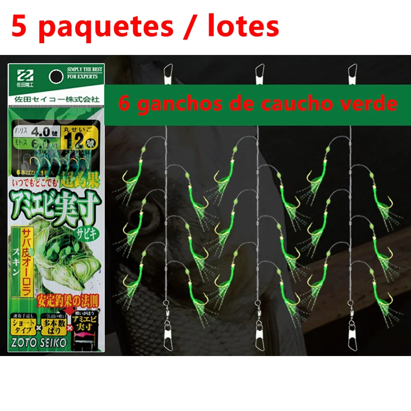 5 paquetes/lote de hilo de piel de pescado biónico verde, anzuelo Topmouth Culter Bass, pesca en el mar lejos, anudado, fluorescente, brillante, bacalao