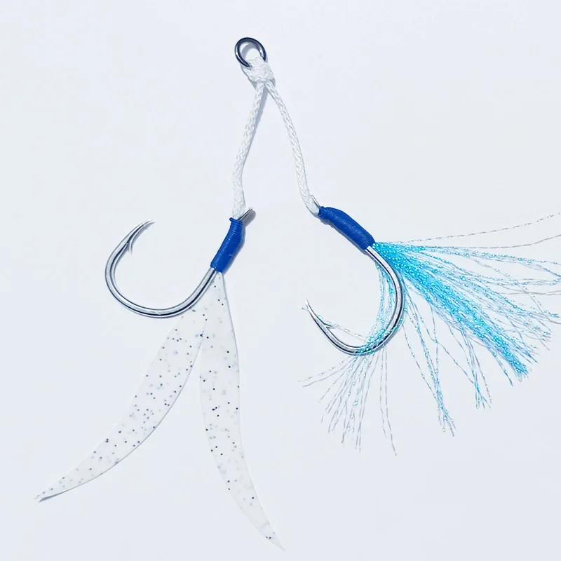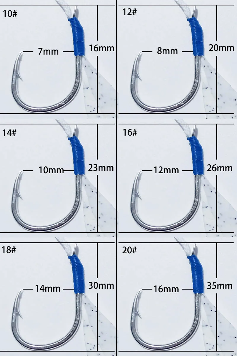 5 pares 10 # 12 # 14 # 16 # 18 # 20 # Ganchos de señuelo de plantilla de alto carbono, ganchos de asistencia de doble púas, gancho de Jigging lento y rápido para agua salada