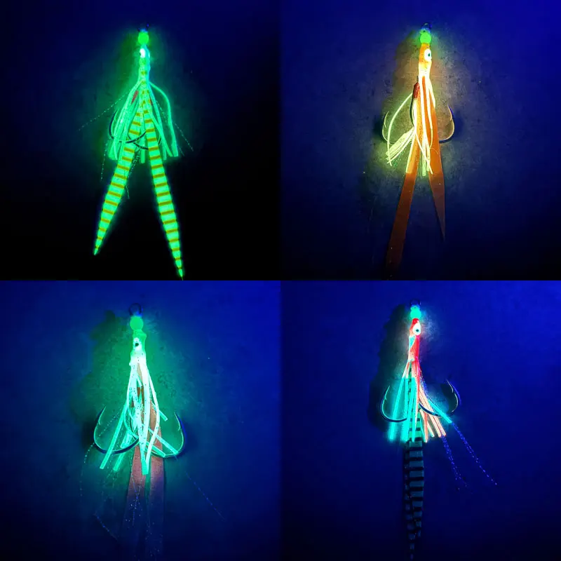 5 pares de anzuelo doble brillante, anzuelo de pescador, plantilla, señuelo, barco de pesca, anzuelo de Lucio de pesca de mar, anzuelo de ayuda de púas de Jigging lento/rápido