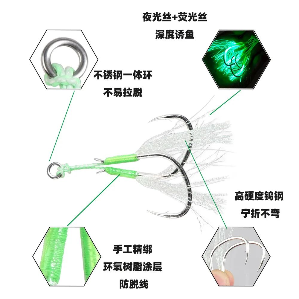 5 pares de anzuelos luminosos con púas, señuelo, corbata, placa de hierro y lana, gancho auxiliar, gancho doble individual, gancho disperso para agua salada