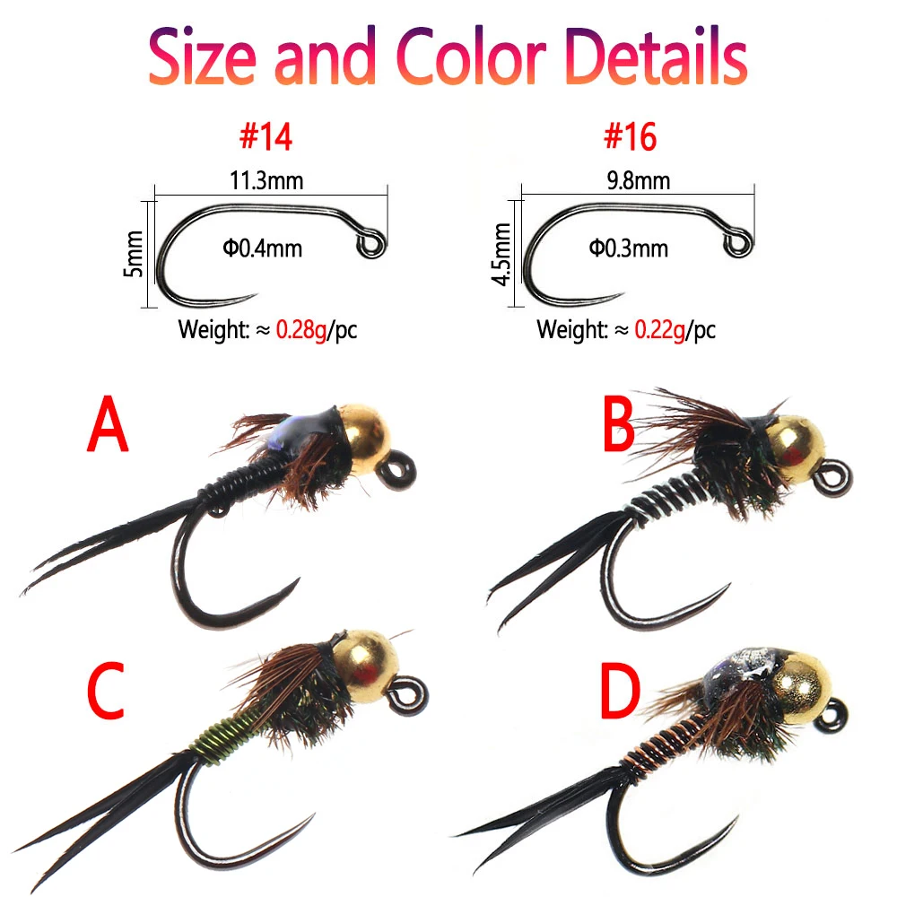 5 piezas#14#16 cabeza de cuentas de tungsteno plantilla sin púas cobre John Fly hilo de cobre costilla fregadero rápido húmedo eur Ninfa mosca Señuelos de pesca de trucha