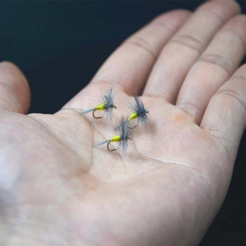 El AZUL WINGED OLIVA (BWO) no es una especie única, sino un grupo de ellas en el género Baetis. Hay muchas moscas que aparecen allí con cuerpos de oliva y alas grises o de color dun. Este patrón de mosca seca es imprescindible en su caja..Tamaño del gancho desnudo:14#-16#.