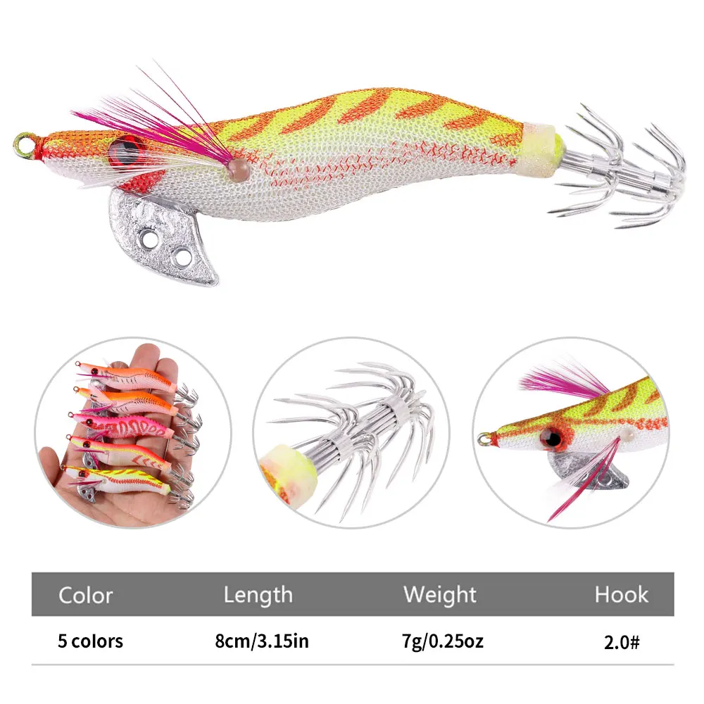 5 piezas/2,0 Egging Luminoso Pesca calamar pulpo Jigging gancho sonajero camarones plantilla señuelo sepia plantillas señuelos cebo duro Pesca en el mar
