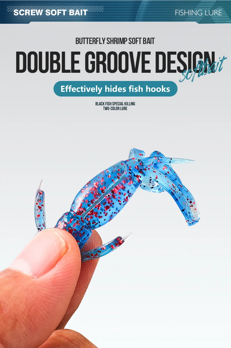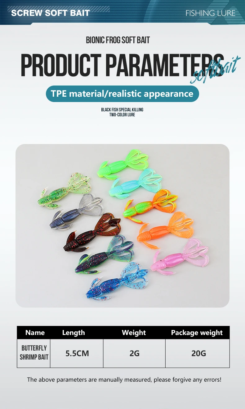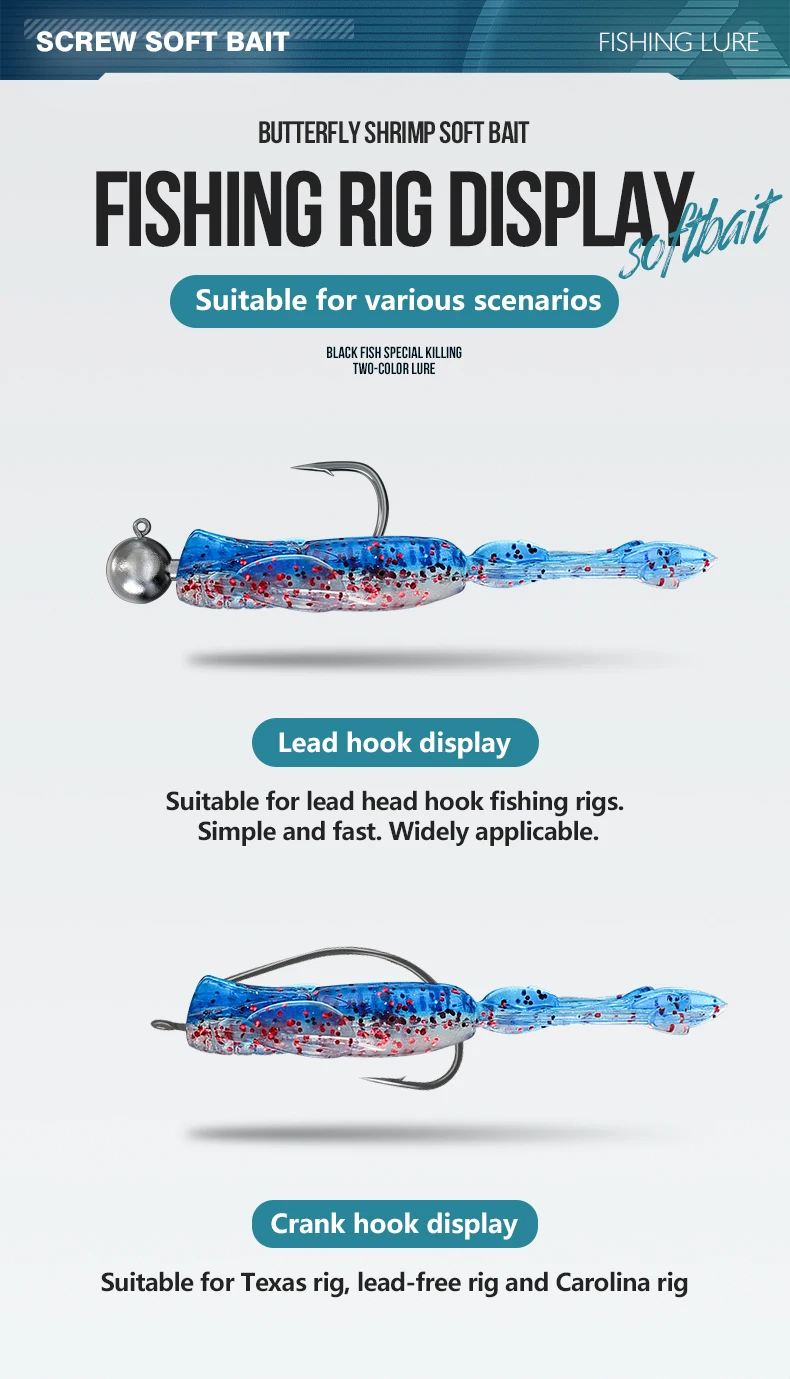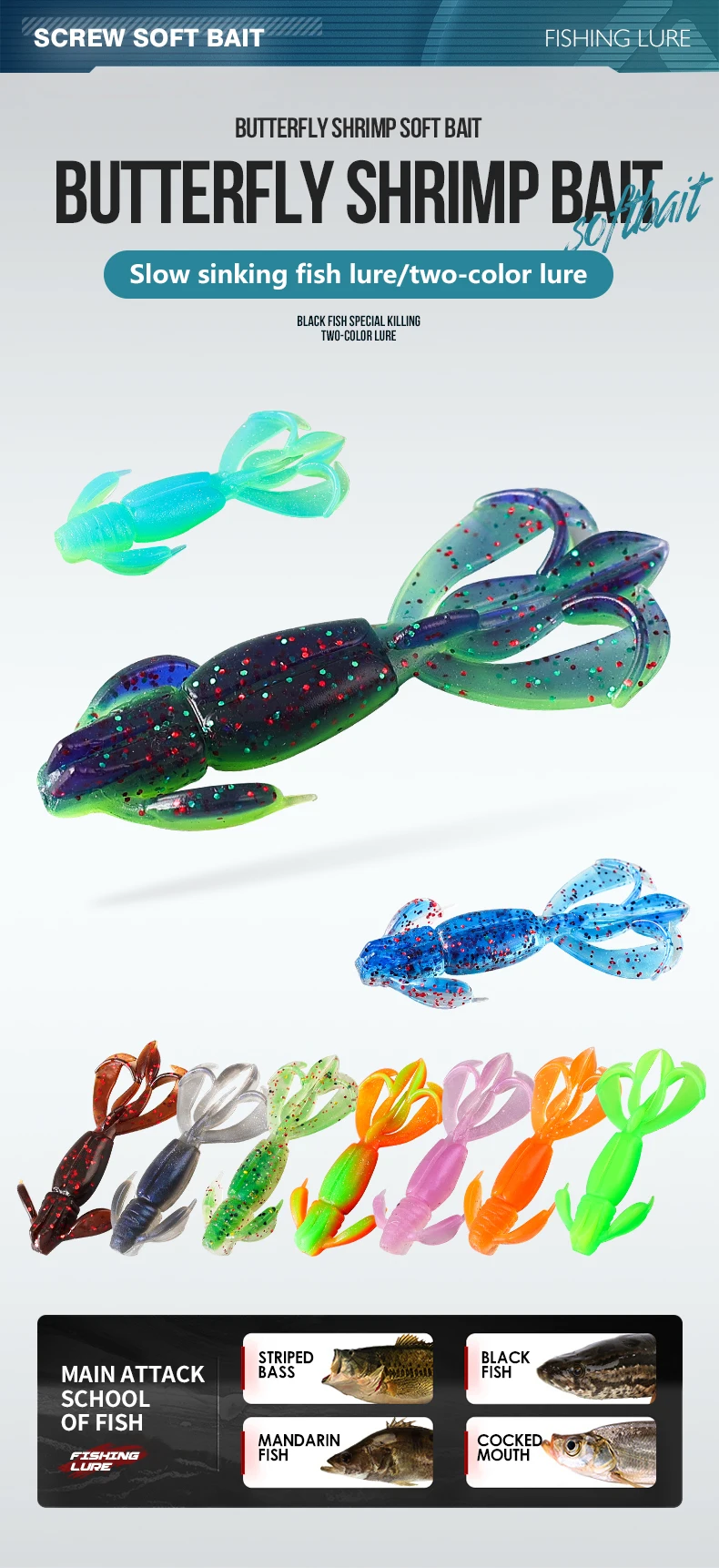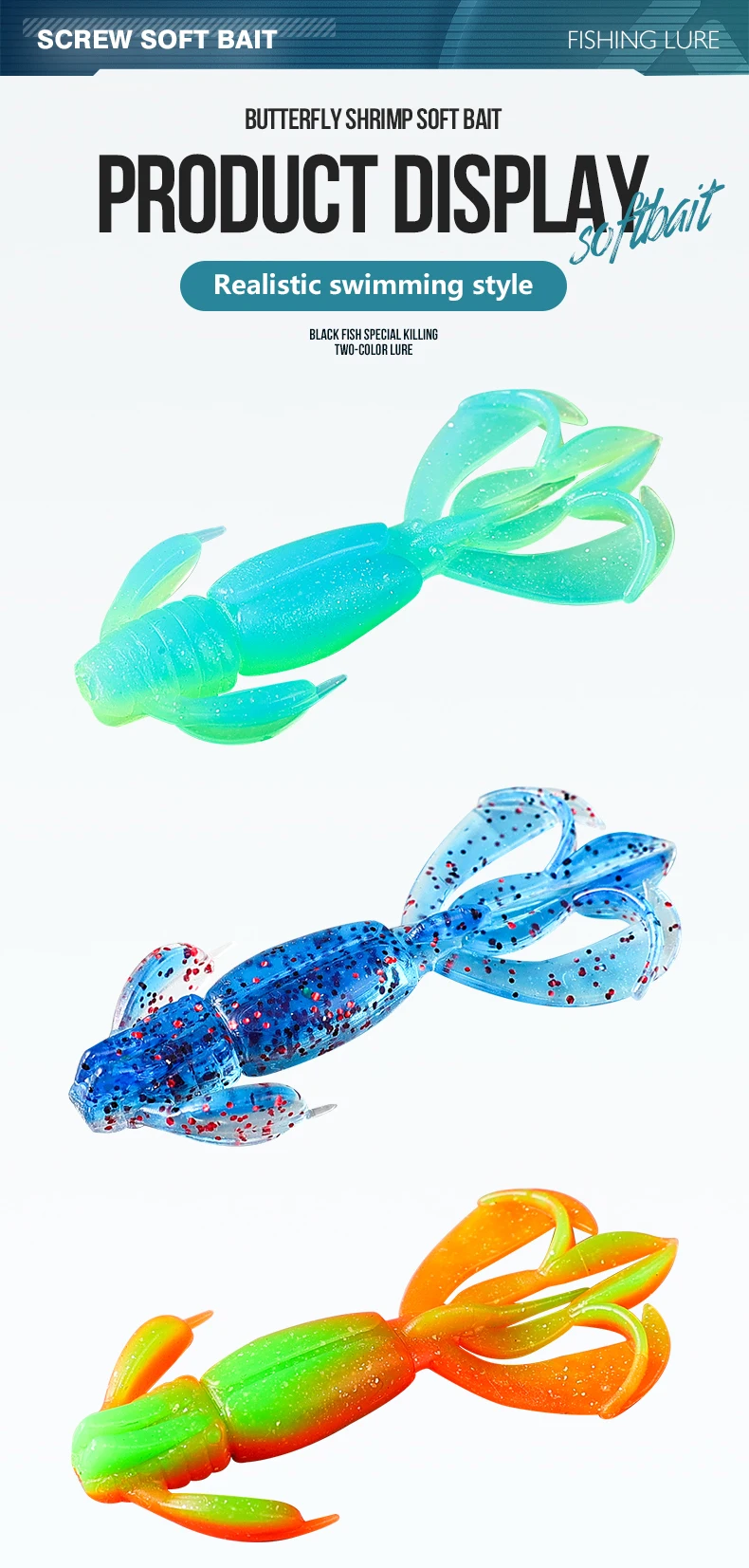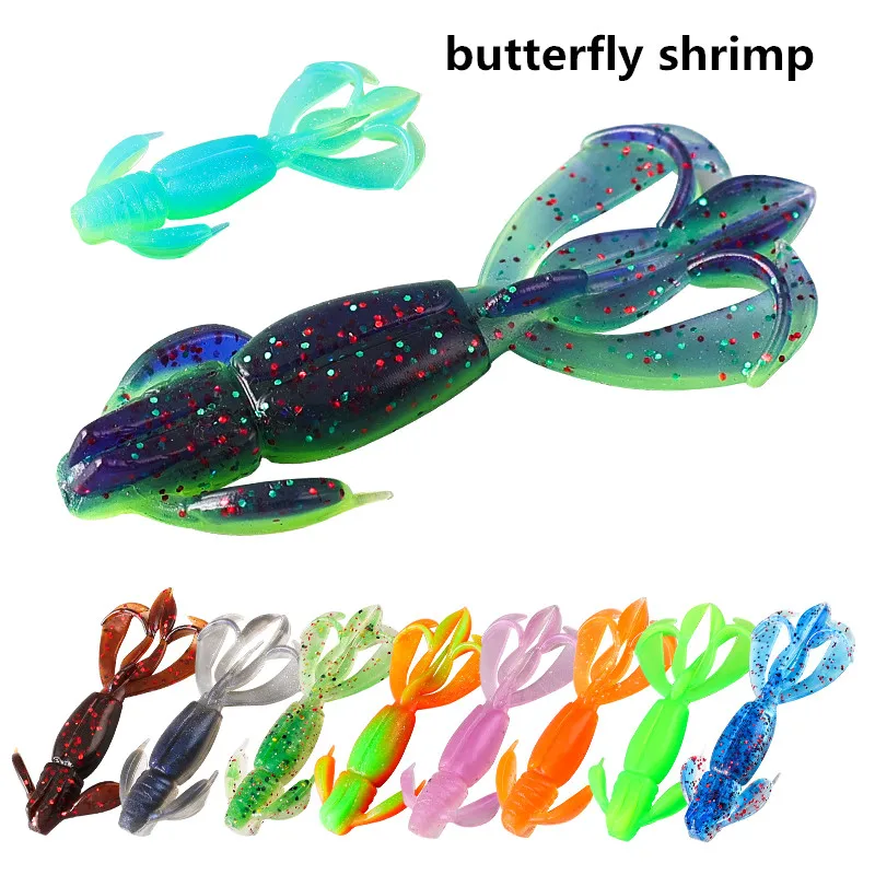 5 piezas de cebo suave para camarones y mariposas, cebo falso biomimético, subcebo flotante para vías navegables, accesorios de pesca para camarones