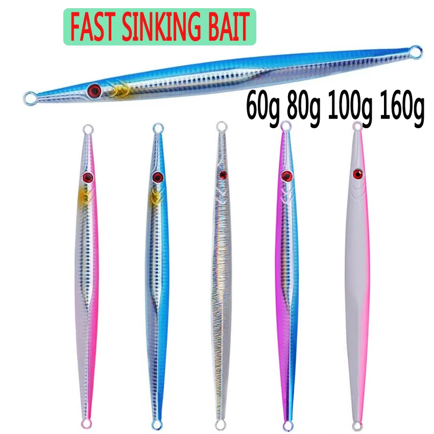 5 pzas/lote plantillas de Metal juego de Señuelos de Pesca de aguas profundas 60g 80g-300g tira larga pescado de dibujo rápido hundimiento rápido señuelo de pesca de vibración lenta
