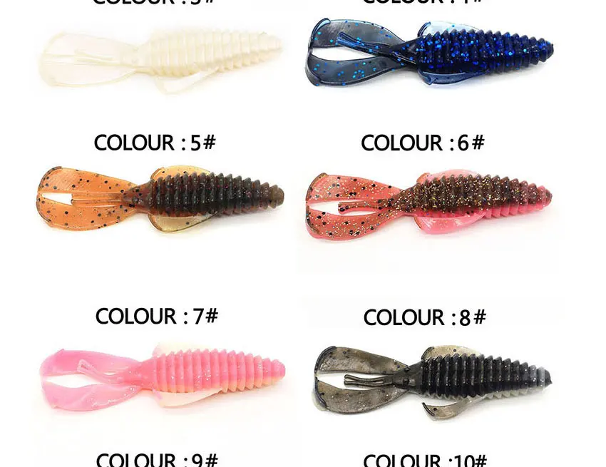 12 colores, puedes elegir según el entorno de pesca y el clima. Ampliar y profundizar el hilo puede producir más reflujo en el agua, especialmente en aguas embarradas, lo que puede atraer la atención de los peces. La cola y las alas en ambos lados pueden hacer que el estilo de natación sea más realista.