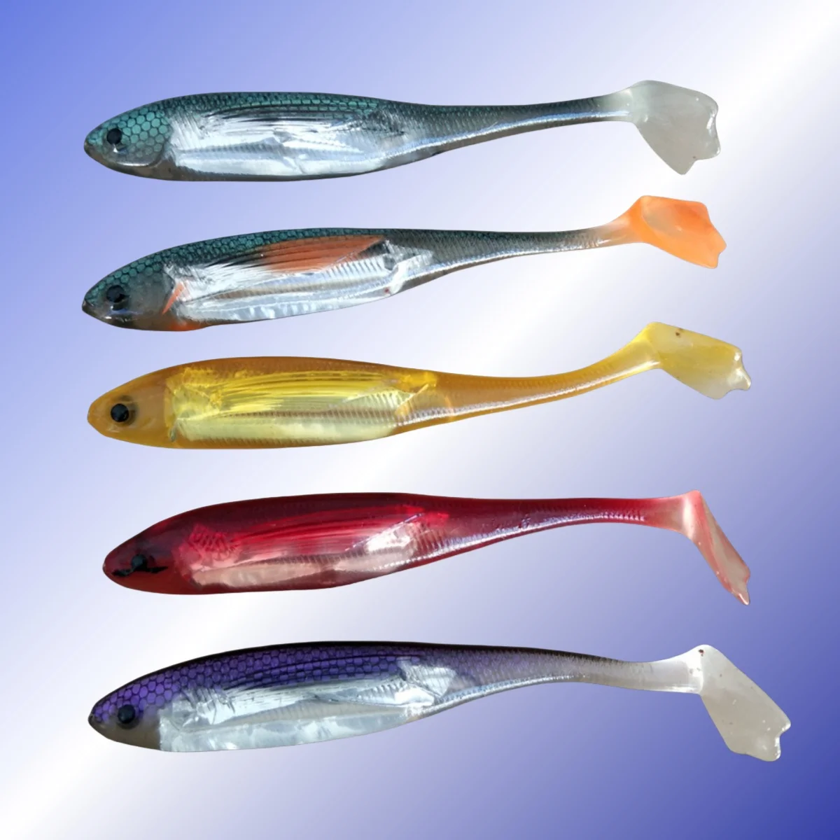 5 uds 12cm 9,9g 3D pintura de peces vivos señuelo cebo de pesca suave cola en T pez para atún lubina pesca en el mar