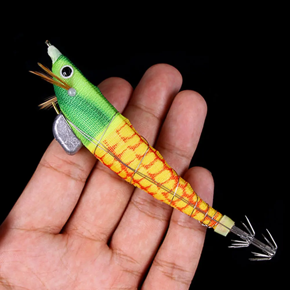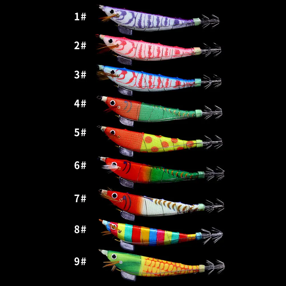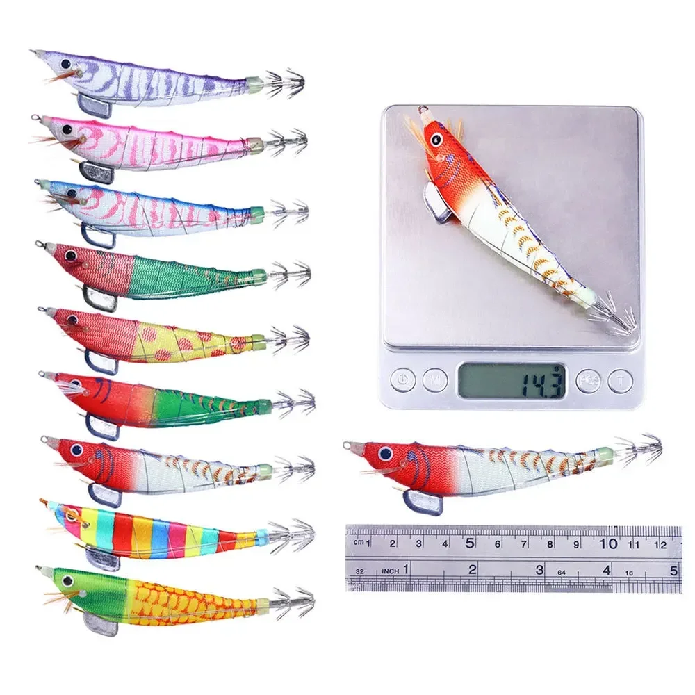 5 uds 12cm pulpo calamar Jig señuelo luminoso camarones de madera Señuelos de pesca artificiales pulpo sepia camarones cebo de pesca duro