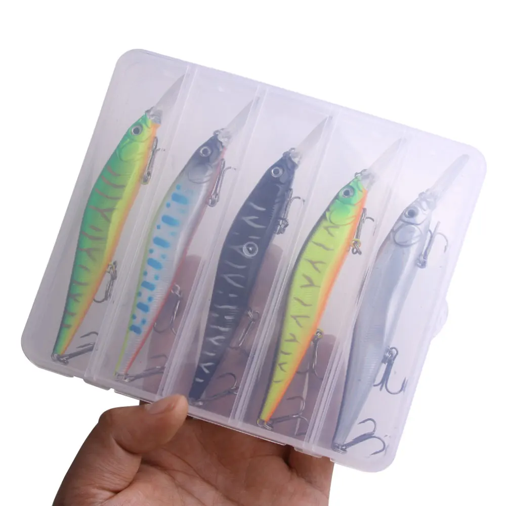 5 uds 13,5 cm 15,6g juego de Señuelos de Pesca minnow kit de caja señuelos de pesca artificiales lubina trucha Lucio Wobbler aparejos de pesca Jerkbait