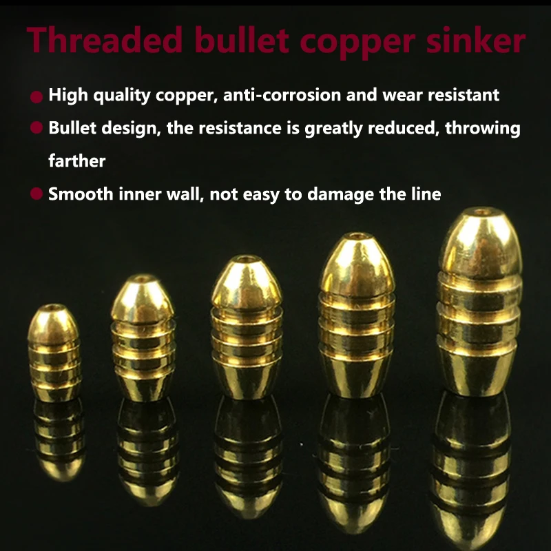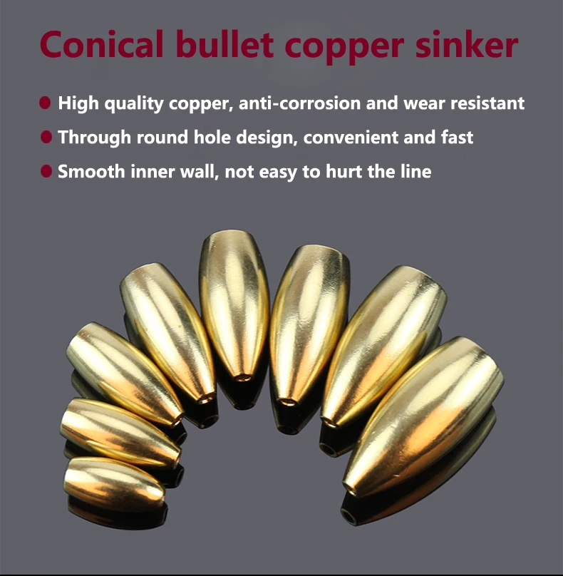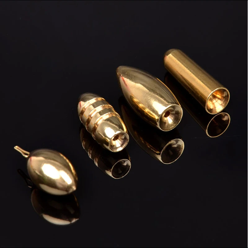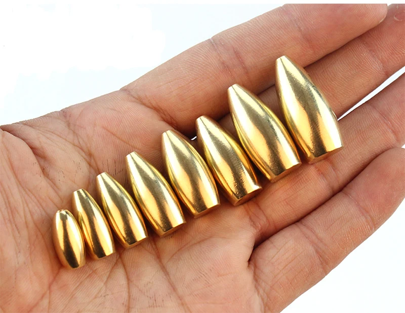 5 uds pesca de agua salada forma de bala plomos de cobre cabeza de plantilla de Metal pesos de agua profunda para anzuelo señuelo Texas Rig aparejos Accesorios