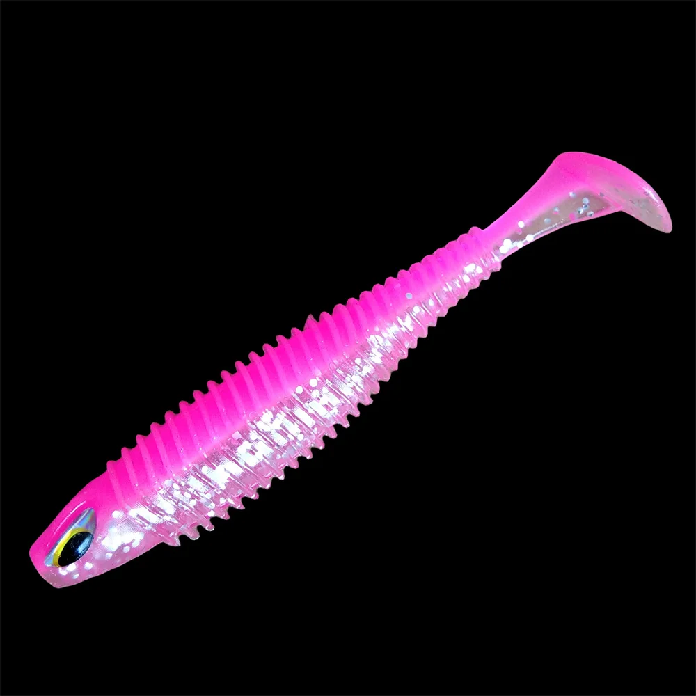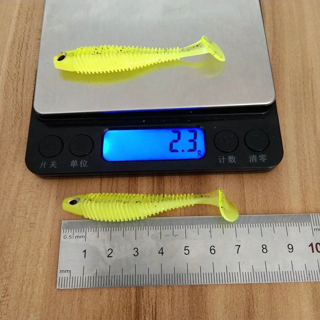 5 uds 3D ojos Shad gusano cebo suave 65mm 2,3g T cola Jigging Wobblers señuelo de pesca aparejos lubina Lucio aritificial silicona Swimbait