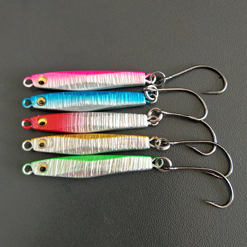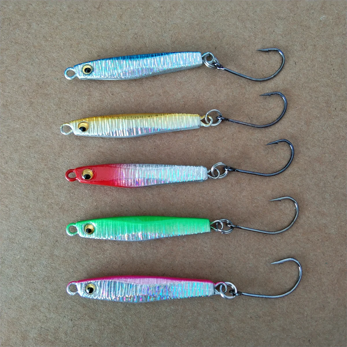 5 uds 4,5 cm 6g Mini plantilla de Metal cuchara señuelo de pesca pez pez pequeño con un solo gancho Isca Artificial señuelo de pesca de lubina