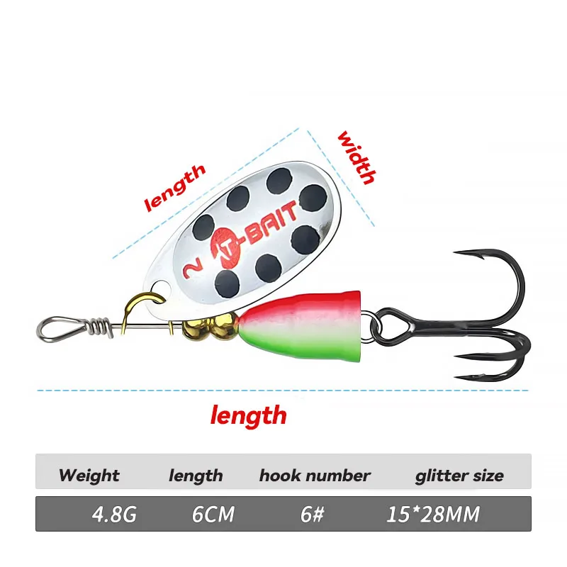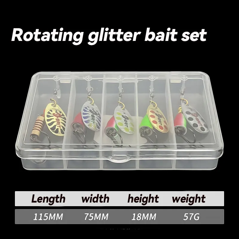 El kit Spinner Lure de alta calidad de 5 piezas viene con una variedad de colores y tamaños brillantes.Las acciones de natación realistas son irresistibles para los peces grandes.