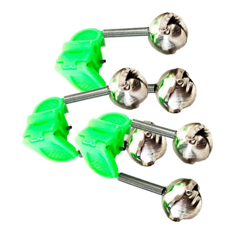 5 uds alarmas de mordedura de pesca caña de pescar campana abrazadera punta Clip campanas anillo ABS verde accesorio de pesca campanas de Metal al aire libre