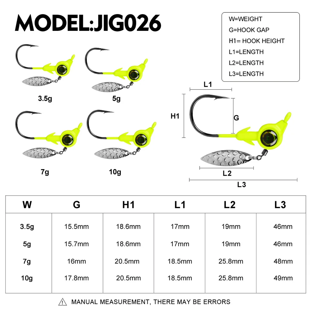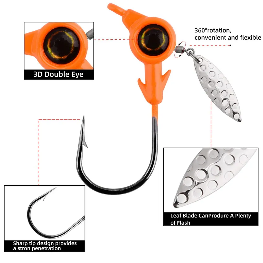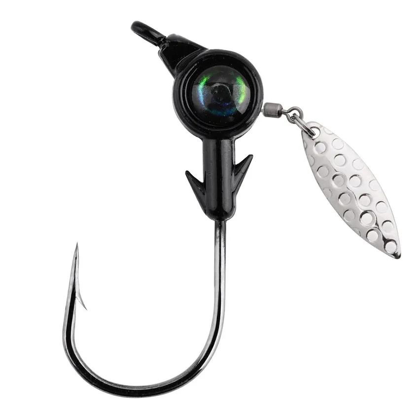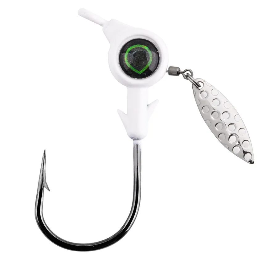 5 uds anzuelo con cabeza de anzuelo 3,5g 5g 7g 10g anzuelo de pesca giratorio lentejuelas plantilla señuelo cucharas de Metal cebos duros para aparejos de pesca de gusano blando