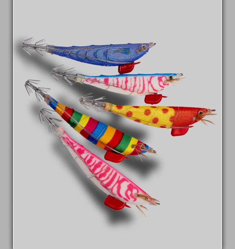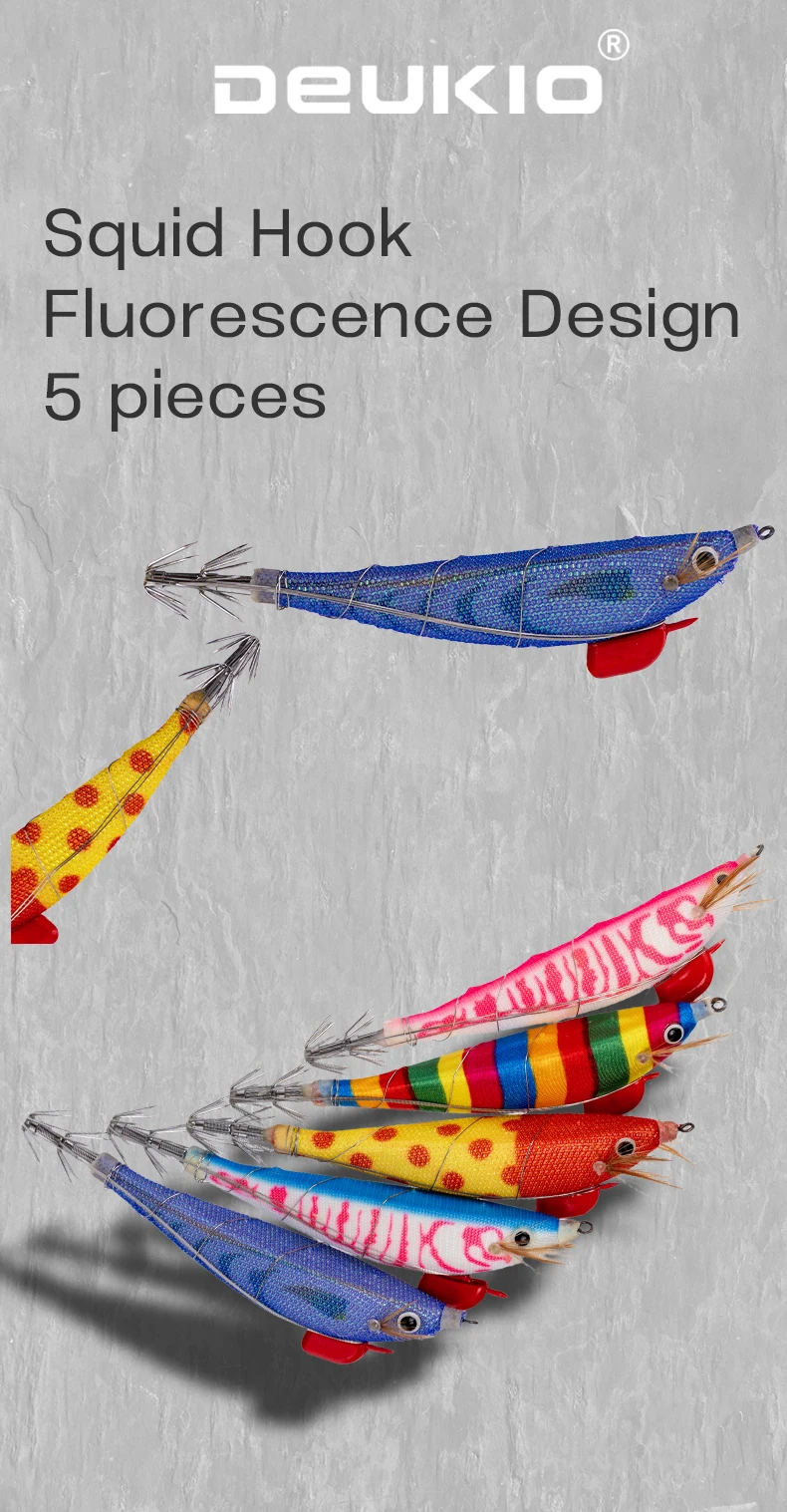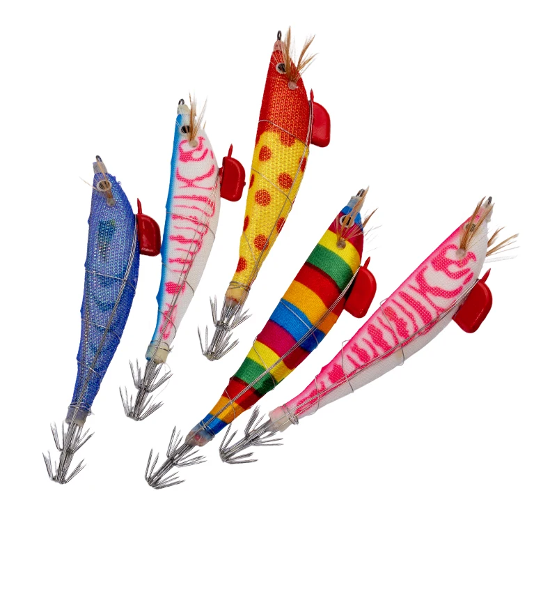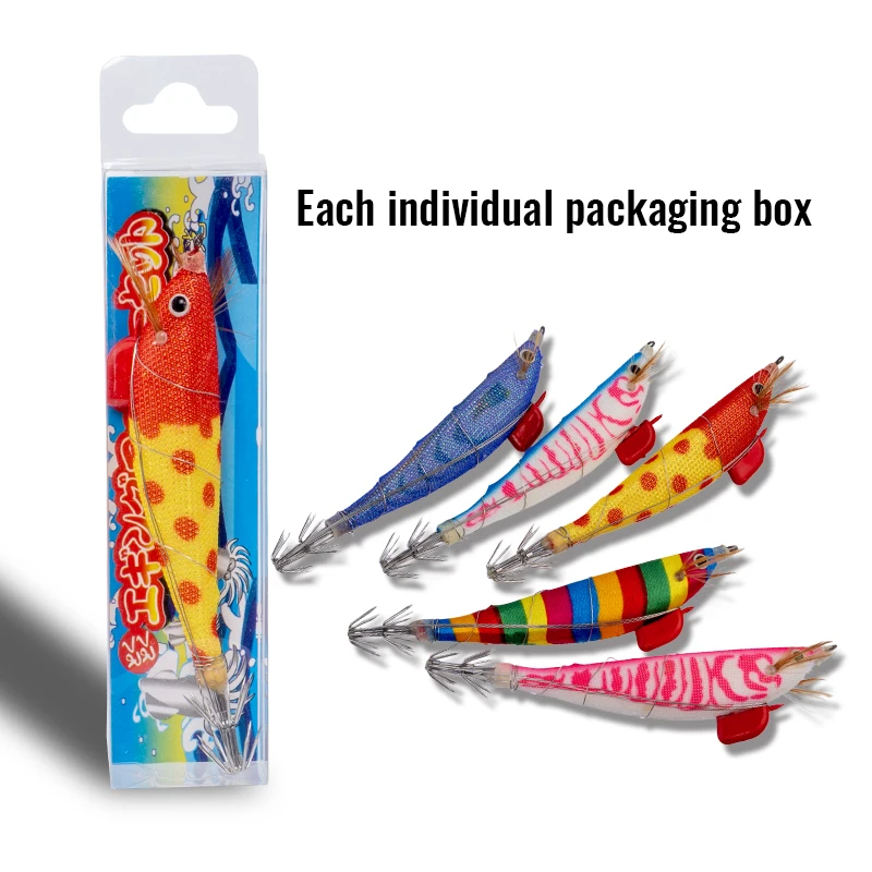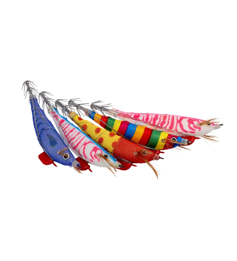 5 uds anzuelo luminoso de calamar juego de camarones de madera señuelos de pesca de sepia de aguas profundas cebos duros de pesca de agua salada