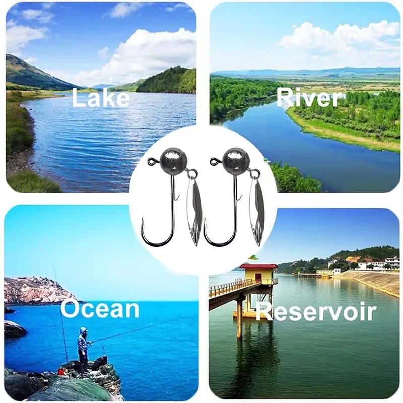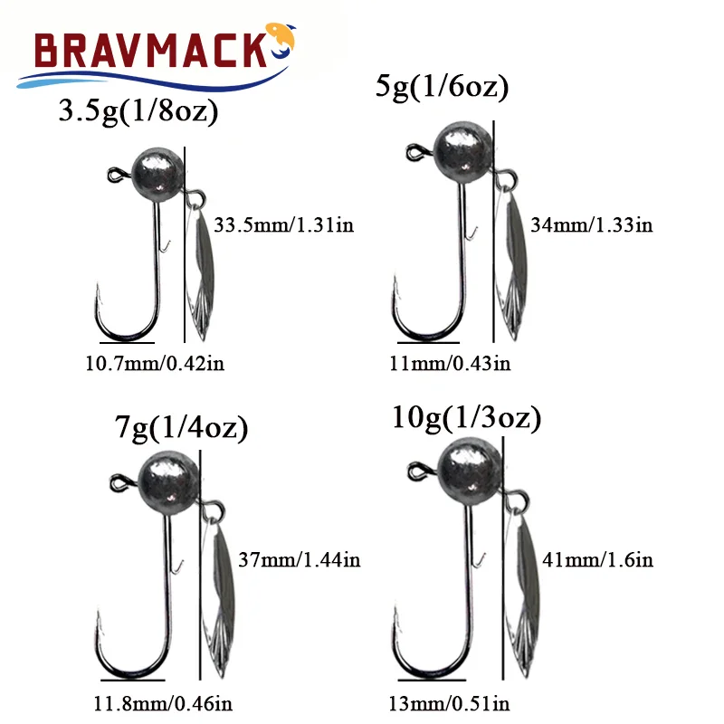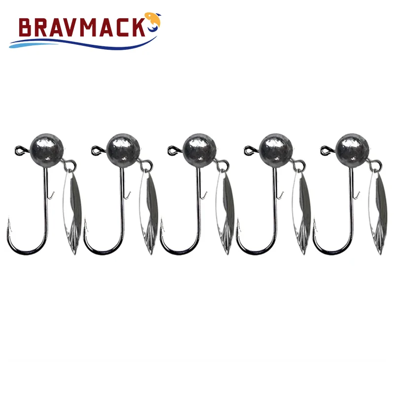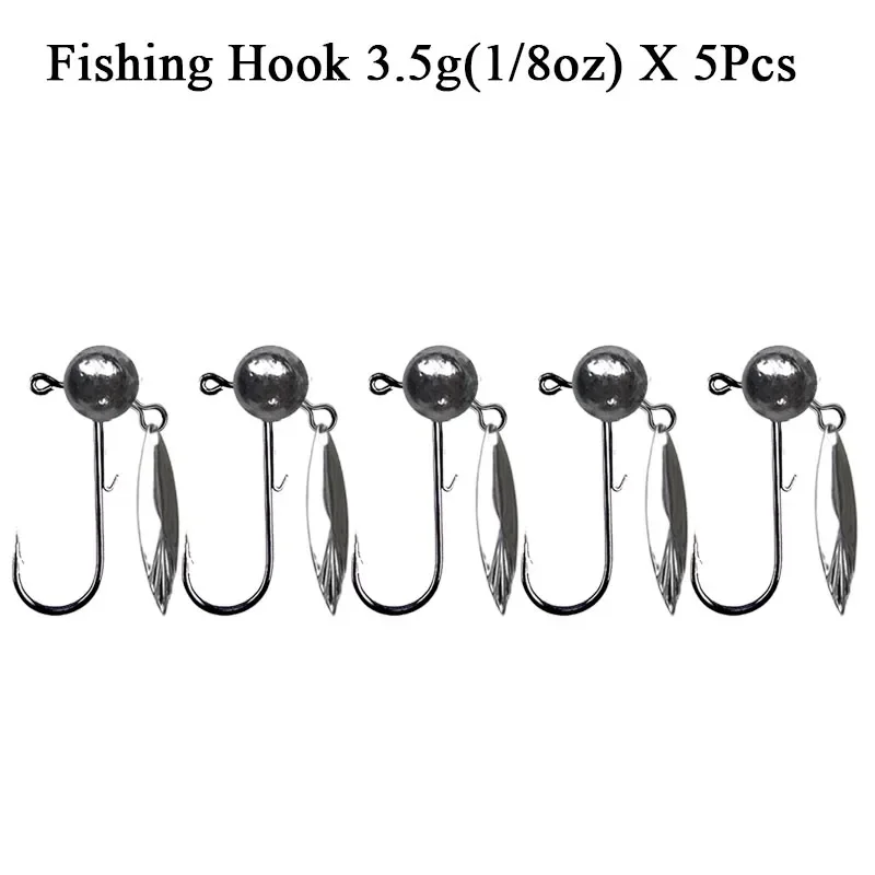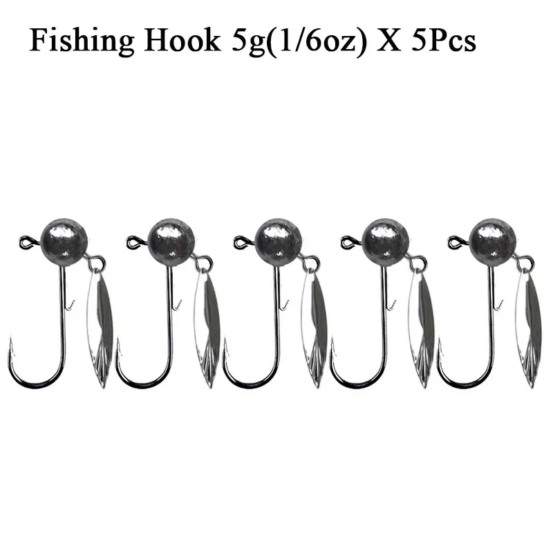 5 uds anzuelo de pesca con cabeza de anzuelo 3,5g 5g 7g 10g anzuelo de bola redonda con hoja anzuelo sin malezas para pesca de gusanos blandos