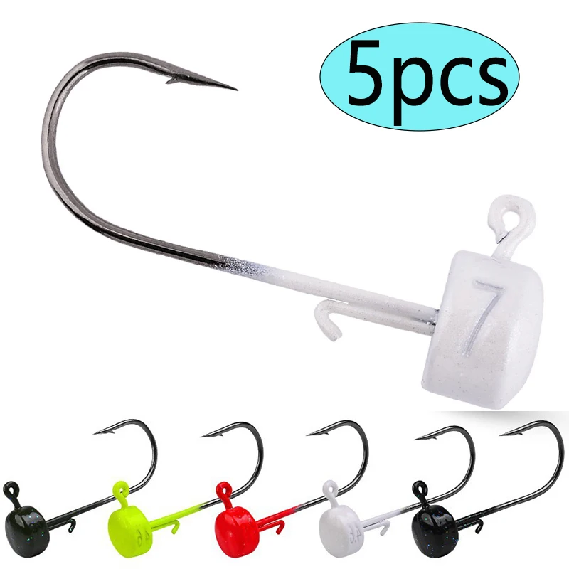 5 uds anzuelos de pesca 2,8g 3,5g 4,6g 7g Ned cabeza de seta anzuelo de púas afilado para señuelos de gusanos blandos herramientas de pesca Jigging