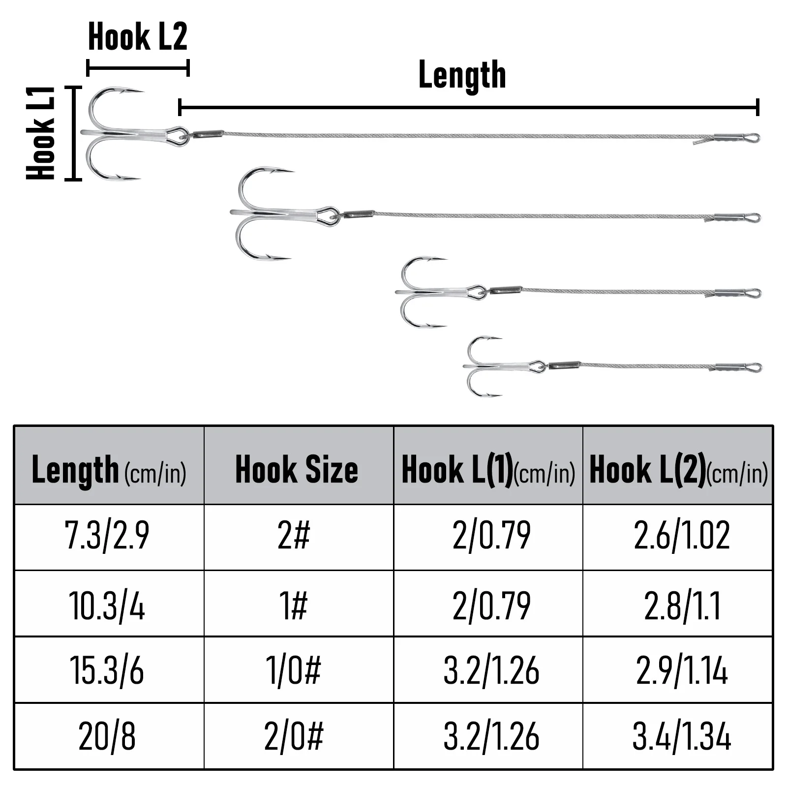 Cantidad: Paquete de 5. Longitud: 6 cm/2,4 '' con 2 # gancho, 10cm/4'' con 1 # gancho, 15cm/6'' con 1/0 # gancho, 20cm/8'' con 2/0 # gancho.