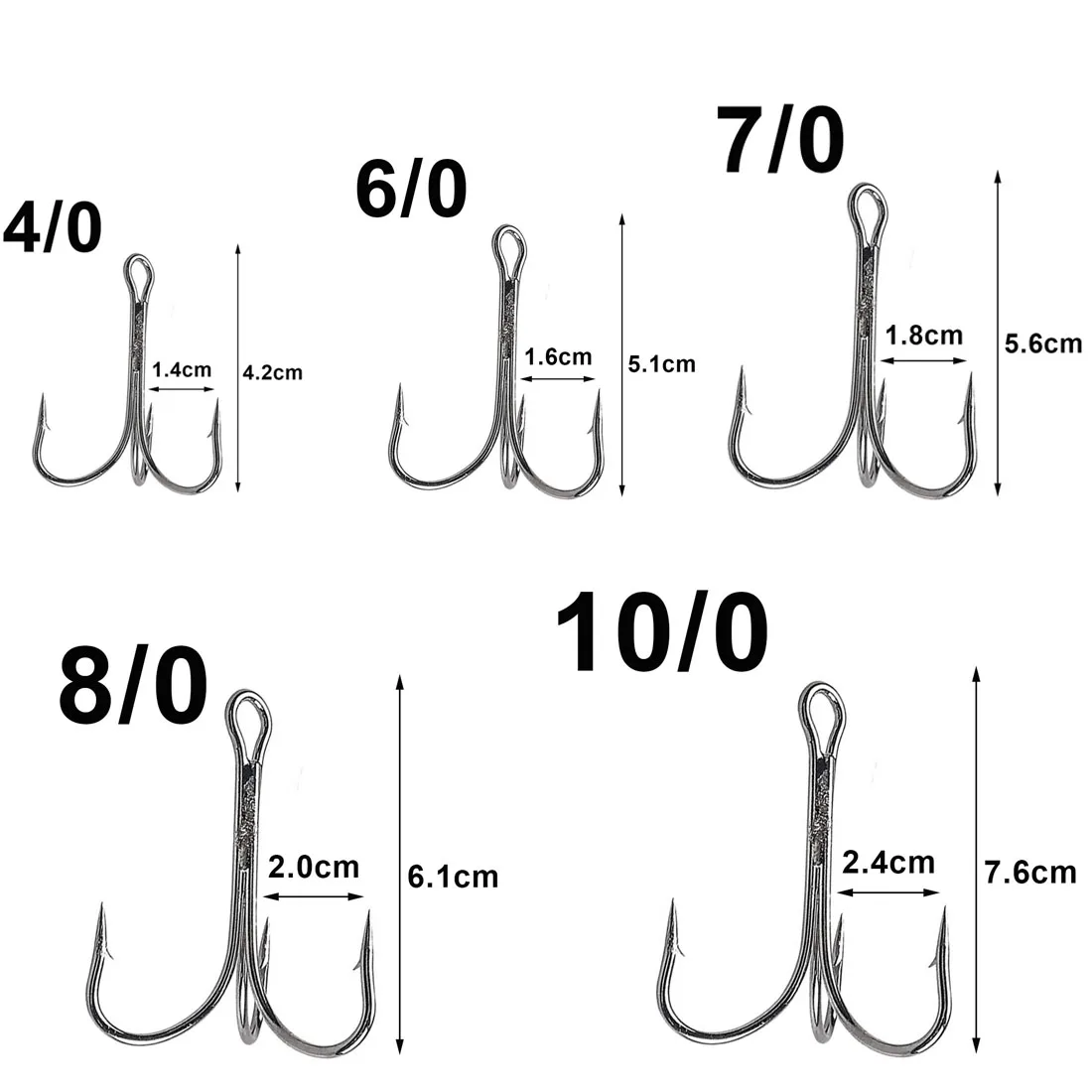 1.Anzuelos de acero con alto contenido de carbono, es duradero y resistente a la corrosión en agua salada, anzuelos triples grandes para peces grandes.