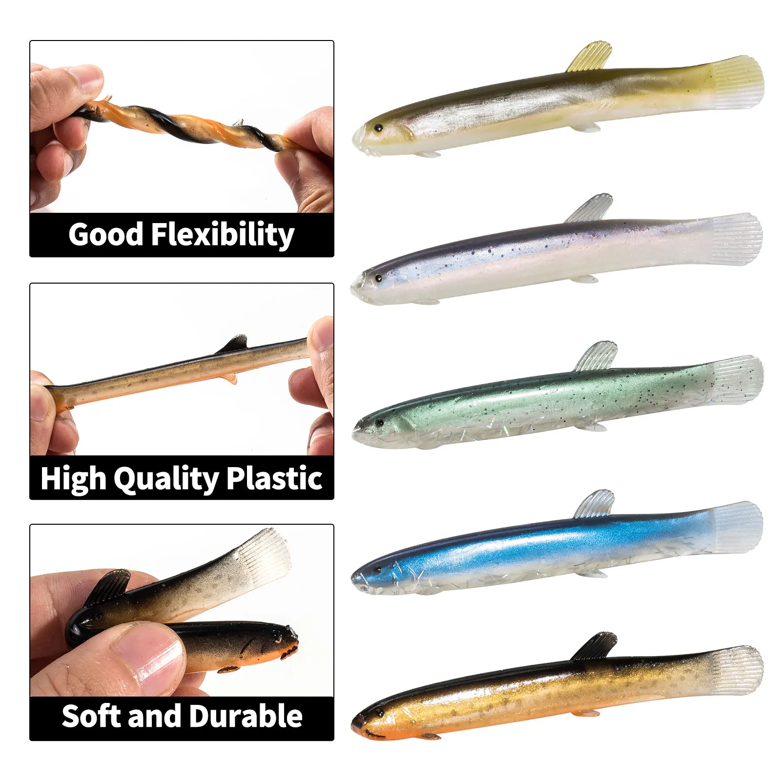 Este swimbait está hecho de plástico blando de alta calidad.Tiene buena ductilidad, flexibilidad y extremadamente resistencia al desgarro.Nunca temas a los depredadores dentados y se espera que sobrevivan a los abusos a largo plazo.