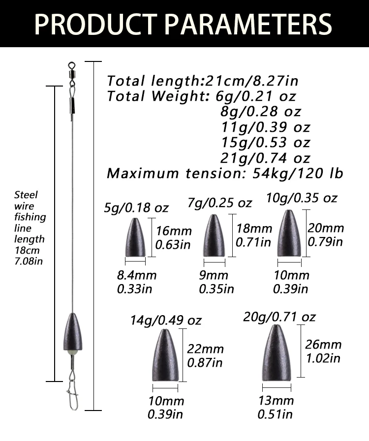 Package Included: 5pcsWeight Carolina Ready Rig