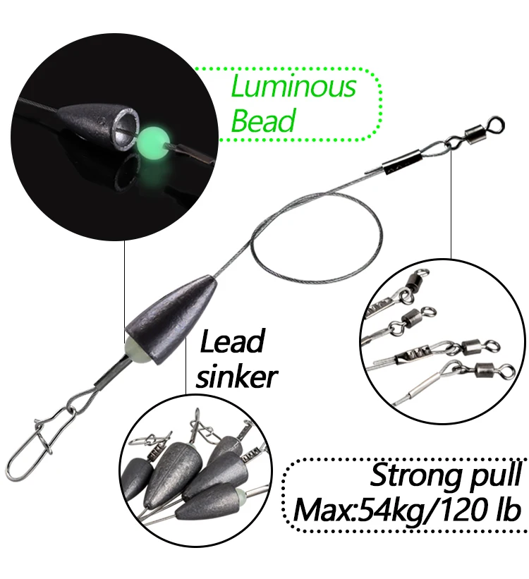 3.The beads are to stop the wire and its knocking sound can attract fish when bumping with the sinker.