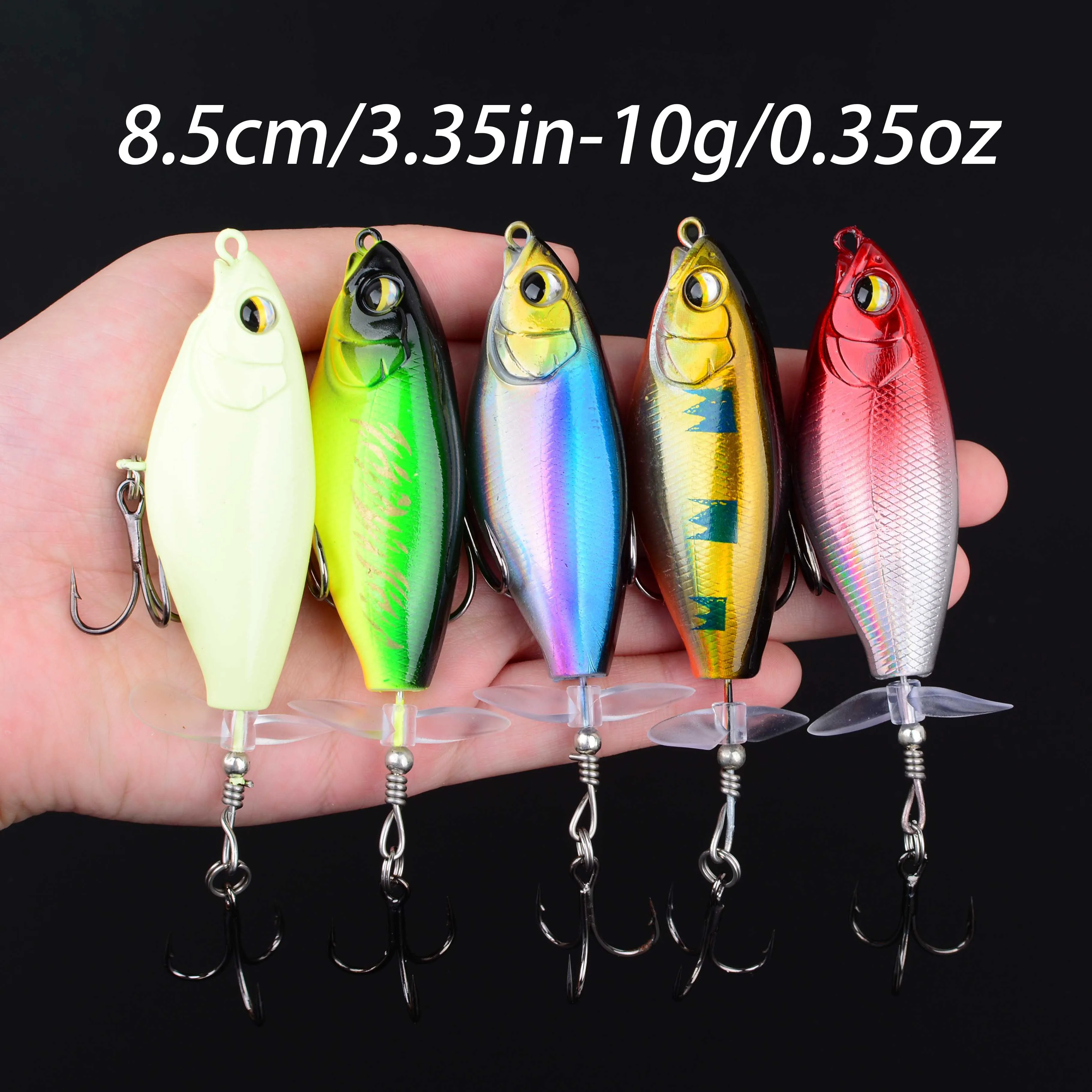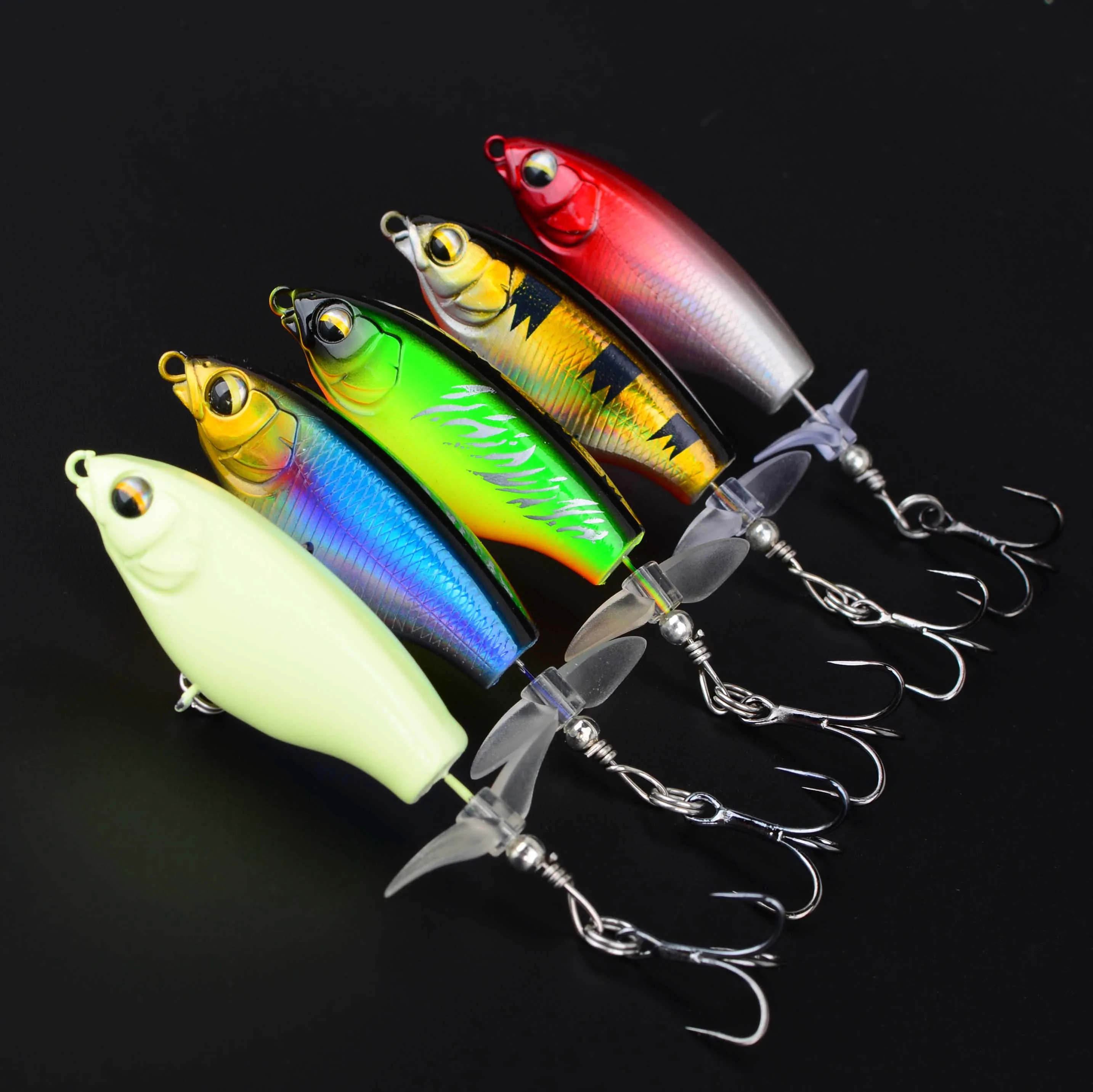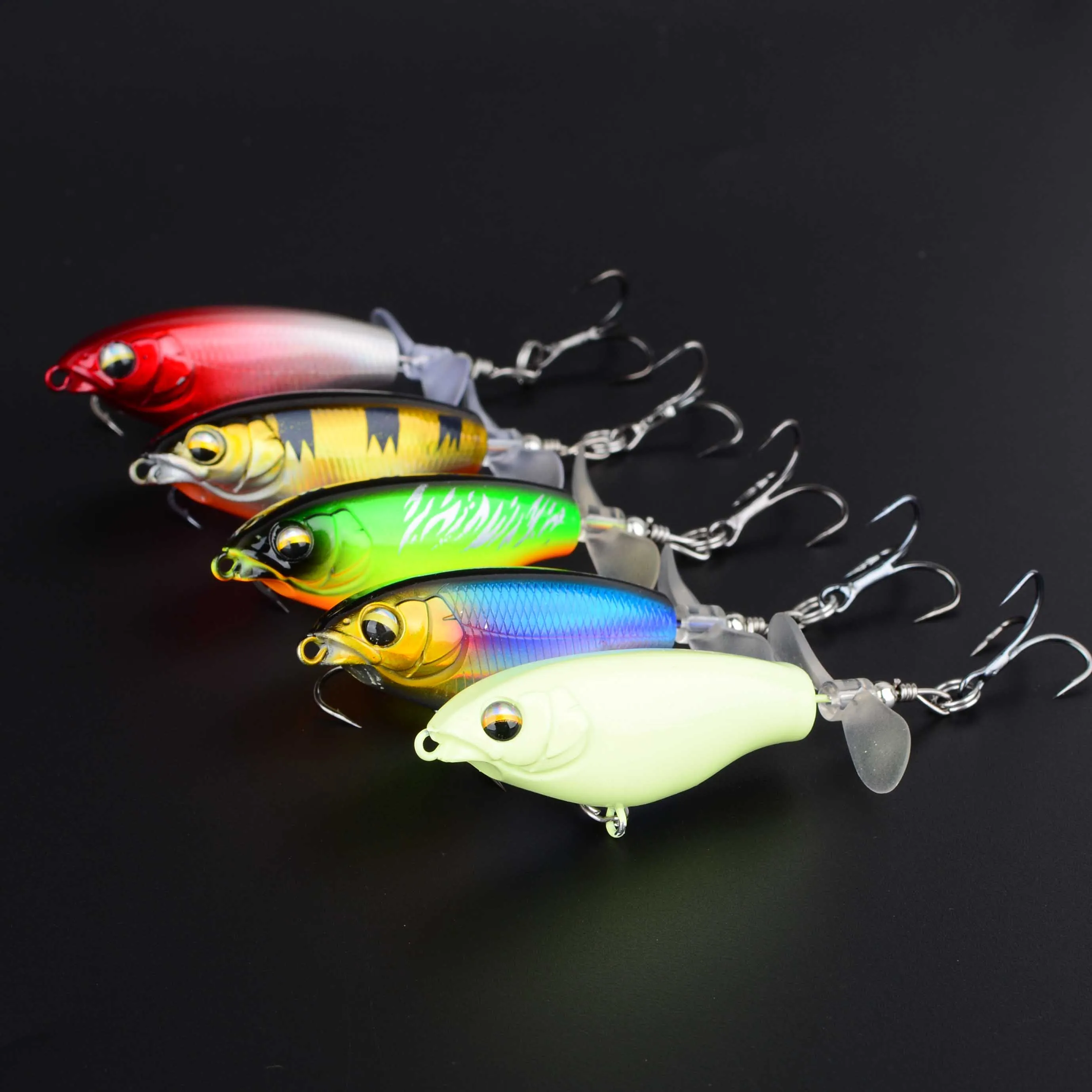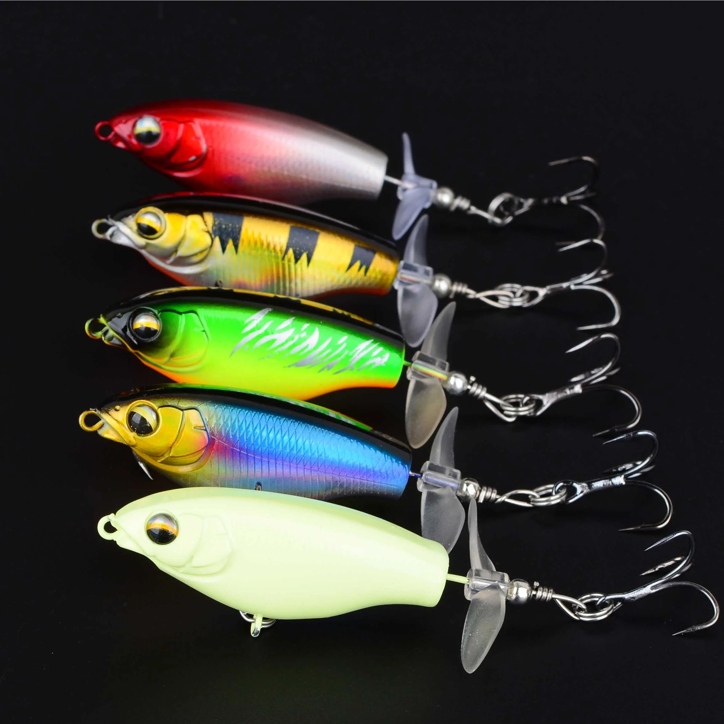 5 uds cebo giratorio Topwater Whopper Popper Señuelos de pesca giratorio doble hélice cola cebo Artificial Wobblers flotantes