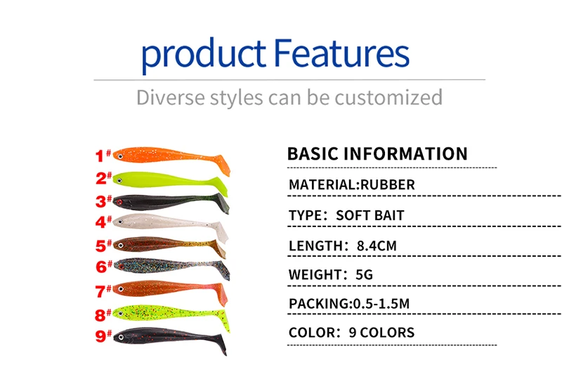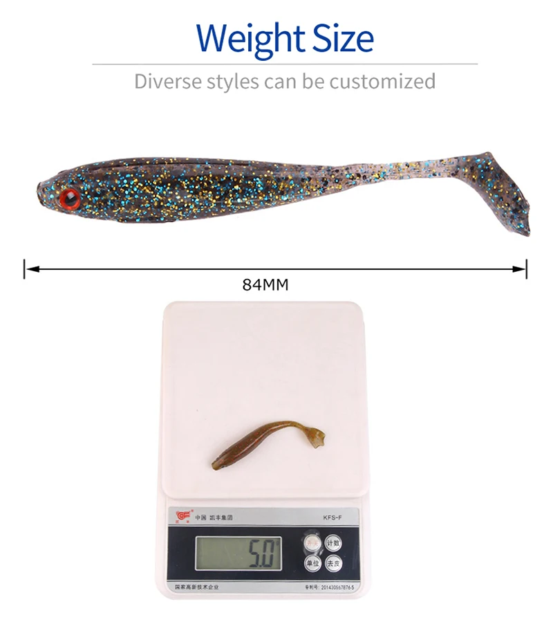 Señuelo de pesca con cebo suave, 5 uds., 5g/8,4cm, Topwater, silicona, pesca en mar, agua dulce