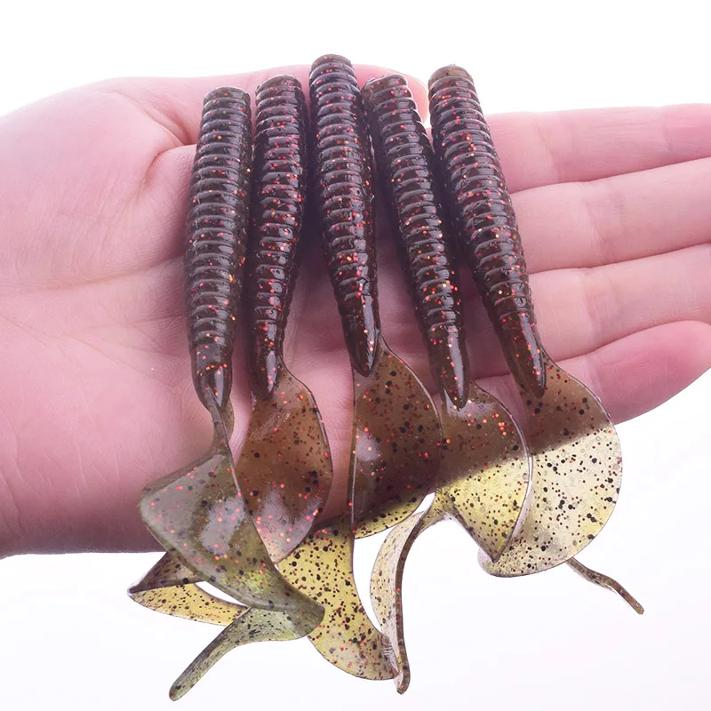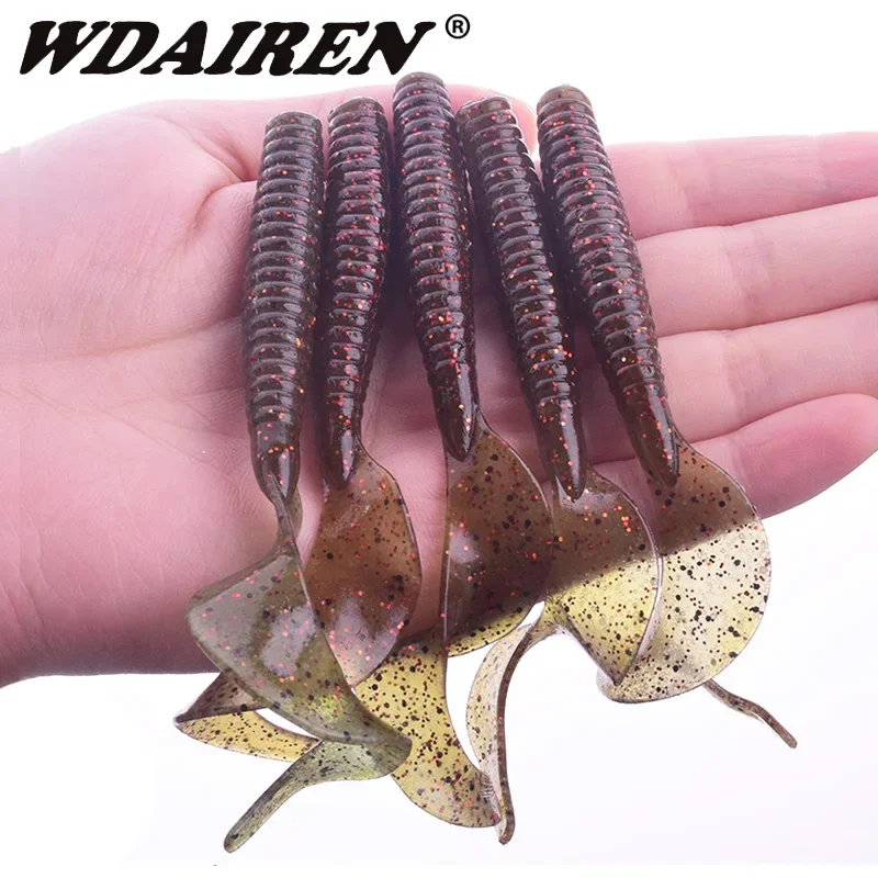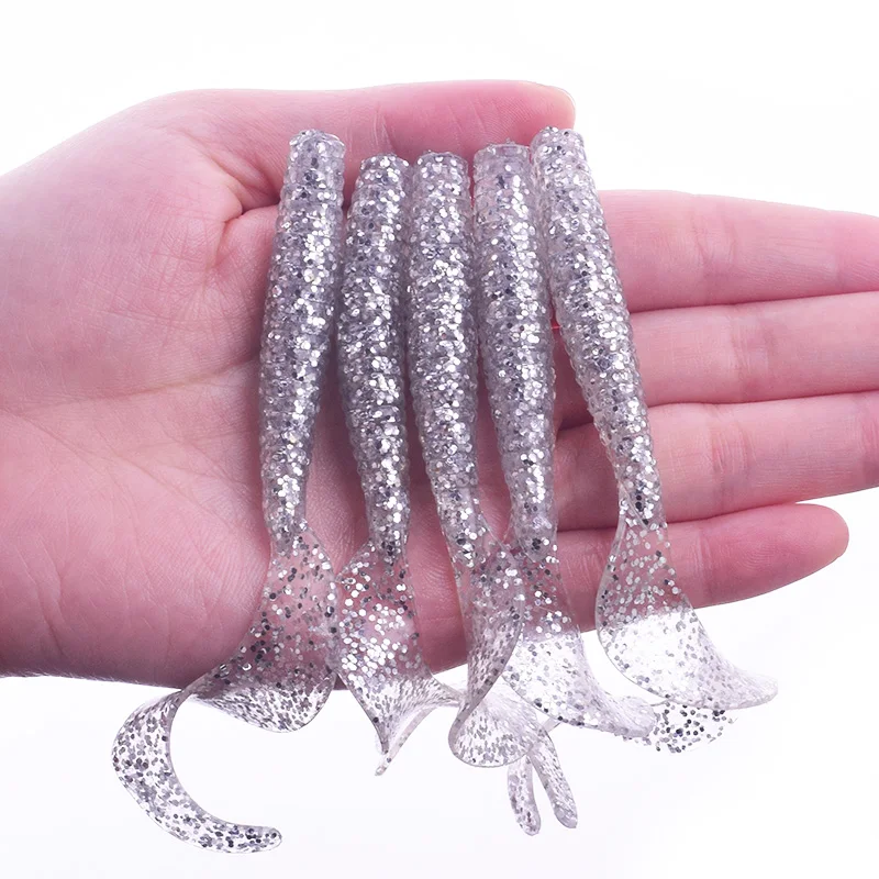 5 uds cebo suave de silicona con olor a pescado y camarón 8cm 4,3g plantilla Wobblers cola Swimbait para carpa lubina con sal cebos artificiales Pesca