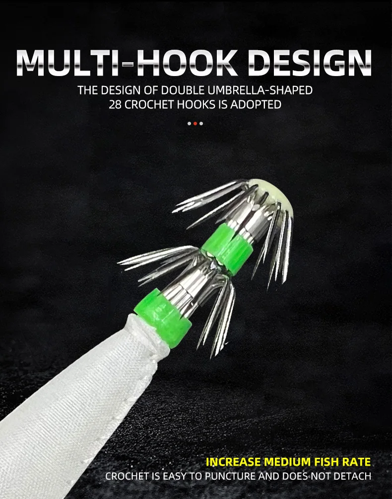 Varios señuelos multicolores para pescar calamares, anzuelos luminosos para plantilla de calamar, cebo de pesca, plantilla, pulpo, seppia, manga, señuelo de pesca