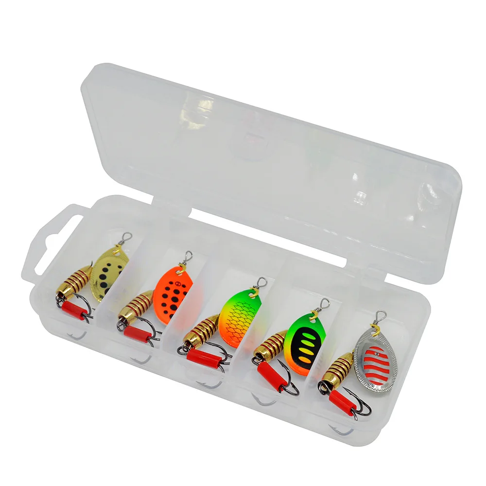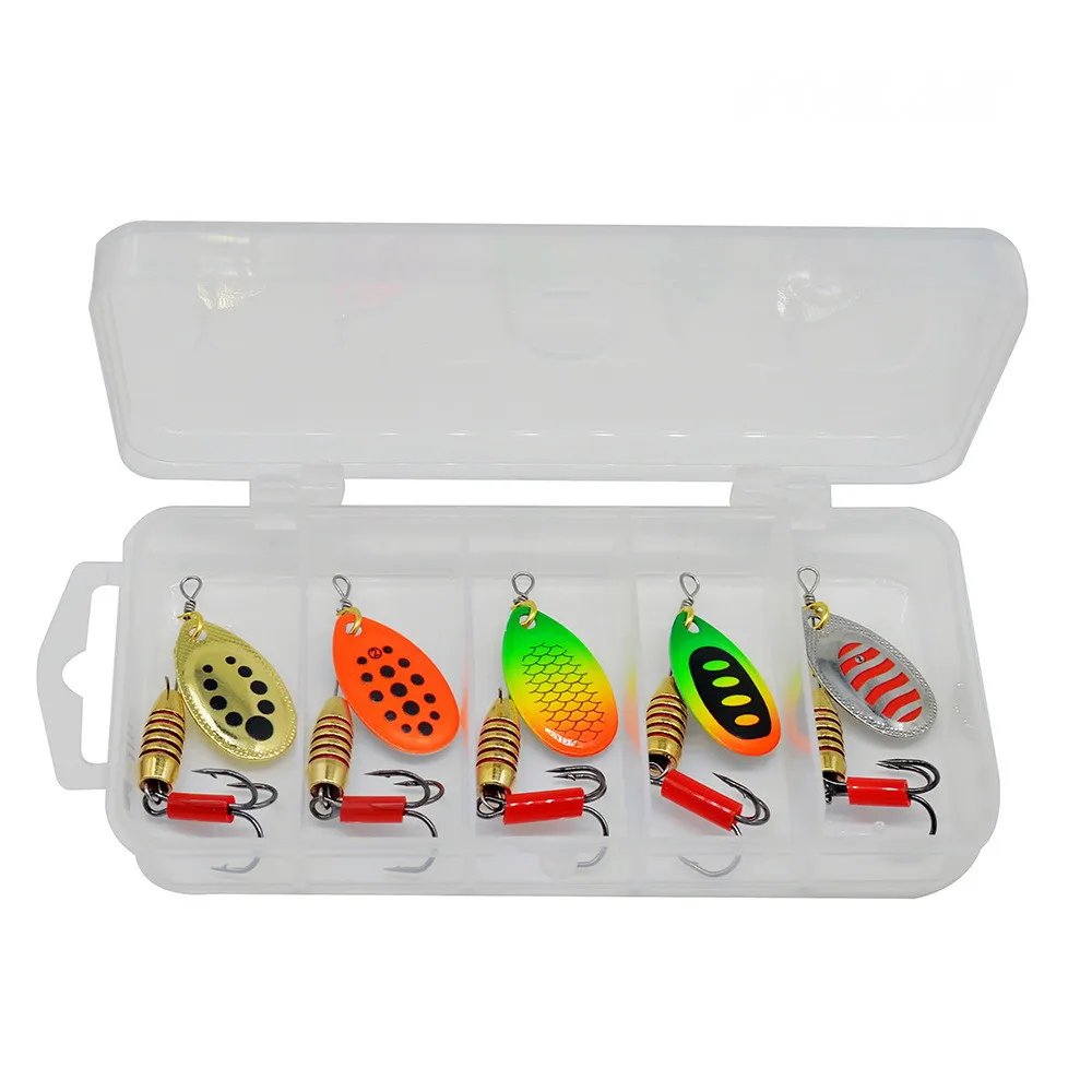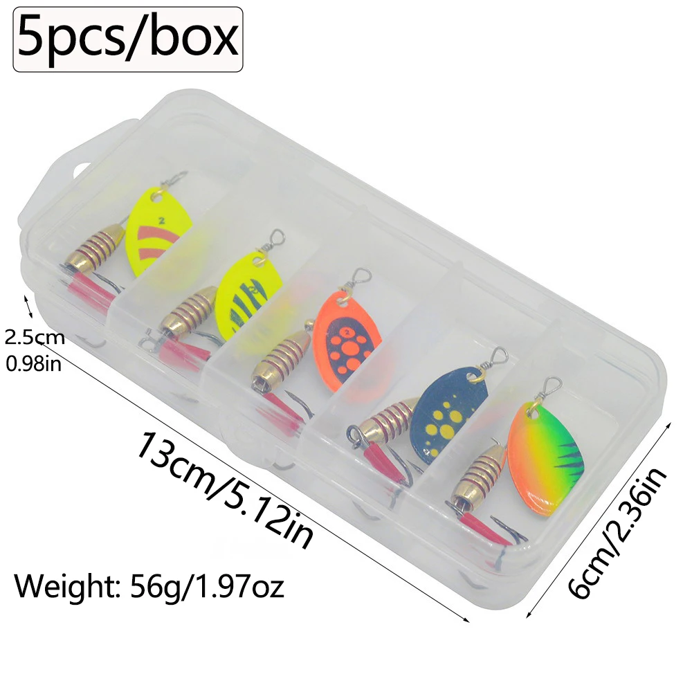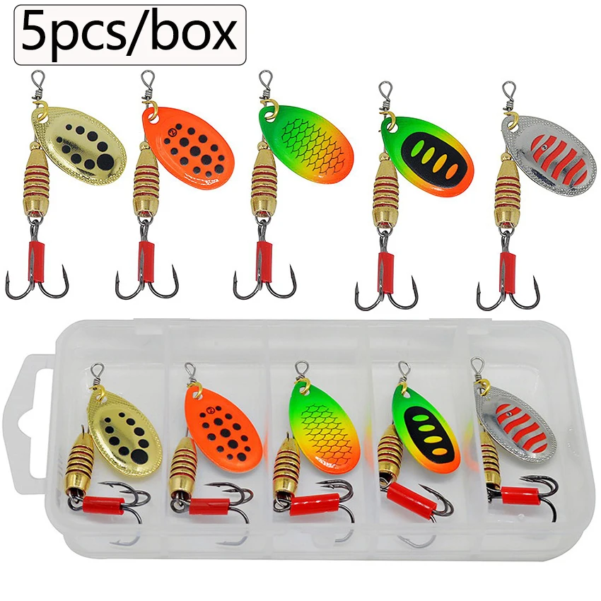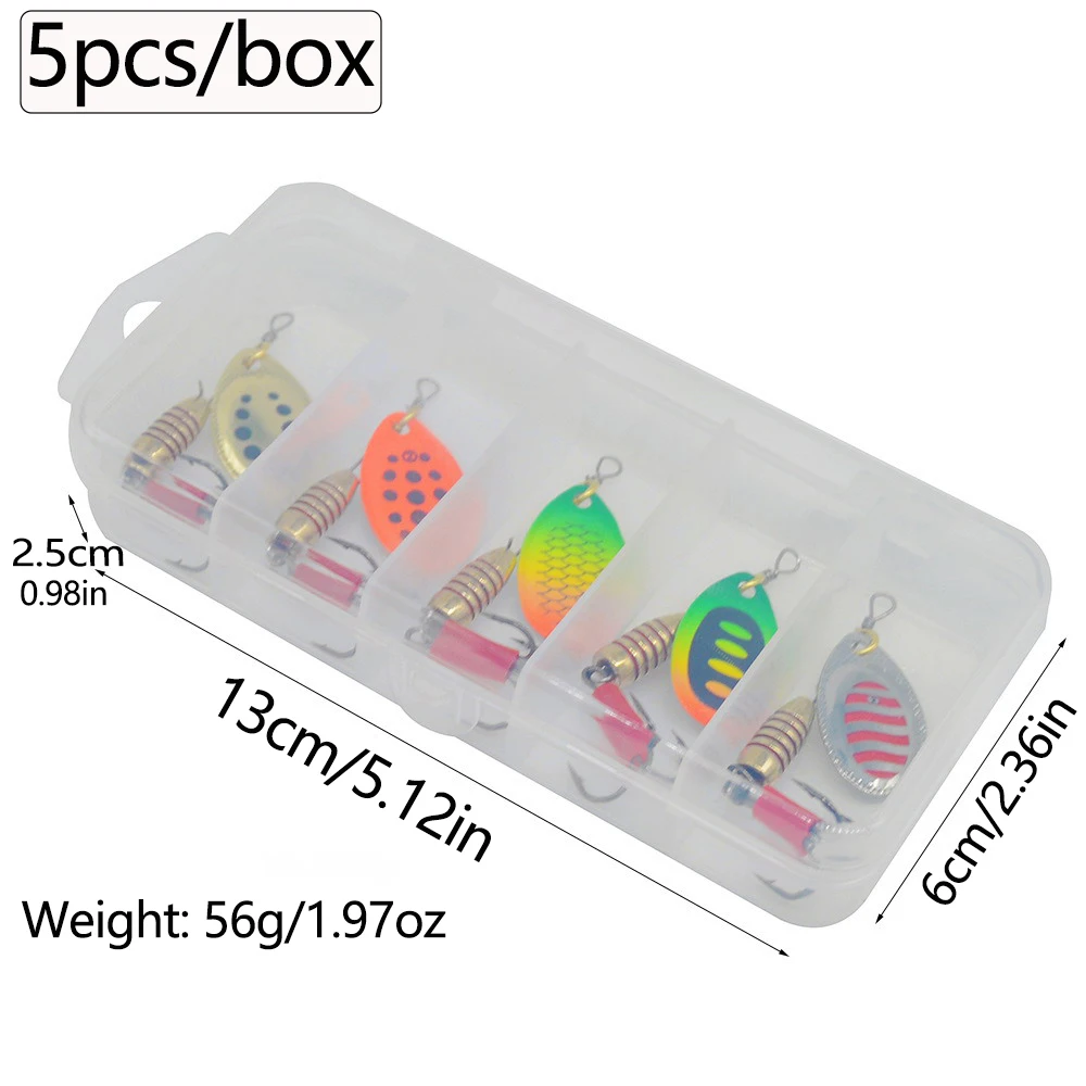 5 uds cuchara giratoria de Metal Señuelos de Pesca cebo 5g lentejuelas ruido Paillette cebos duros con gancho caja de aparejos de pesca
