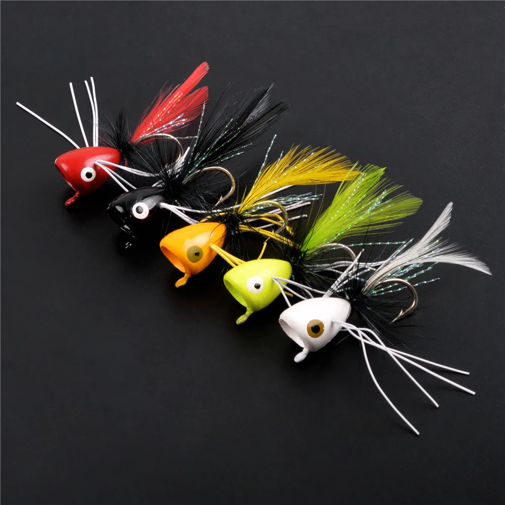5 uds espuma de lubina flotante Popper Jig cabeza señuelo de pesca con mosca Topwater Panfish Bluegill Bugs surtidos poppers aparejos de cebo Artificial