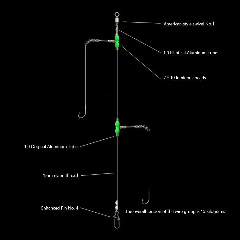 Líderes de pesca con brillo nocturno, línea de pesca con giratorios y broches, líder de alambre de pesca, aparejos de pesca giratorios de 360 grados, 5 uds.