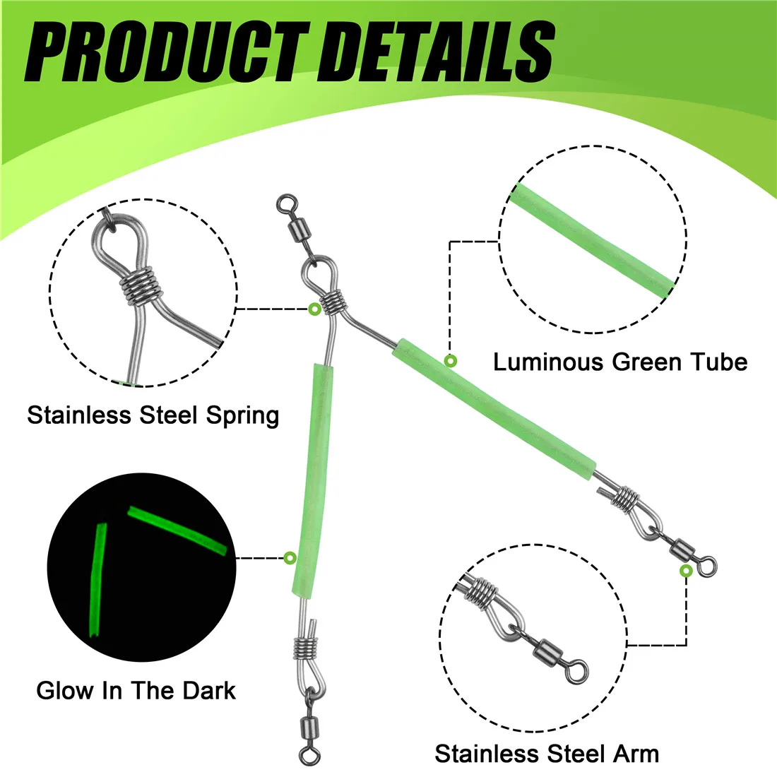 Material: líder de choque de acero inoxidable, giratorios de latón, cebo luminoso de tubo de plástico