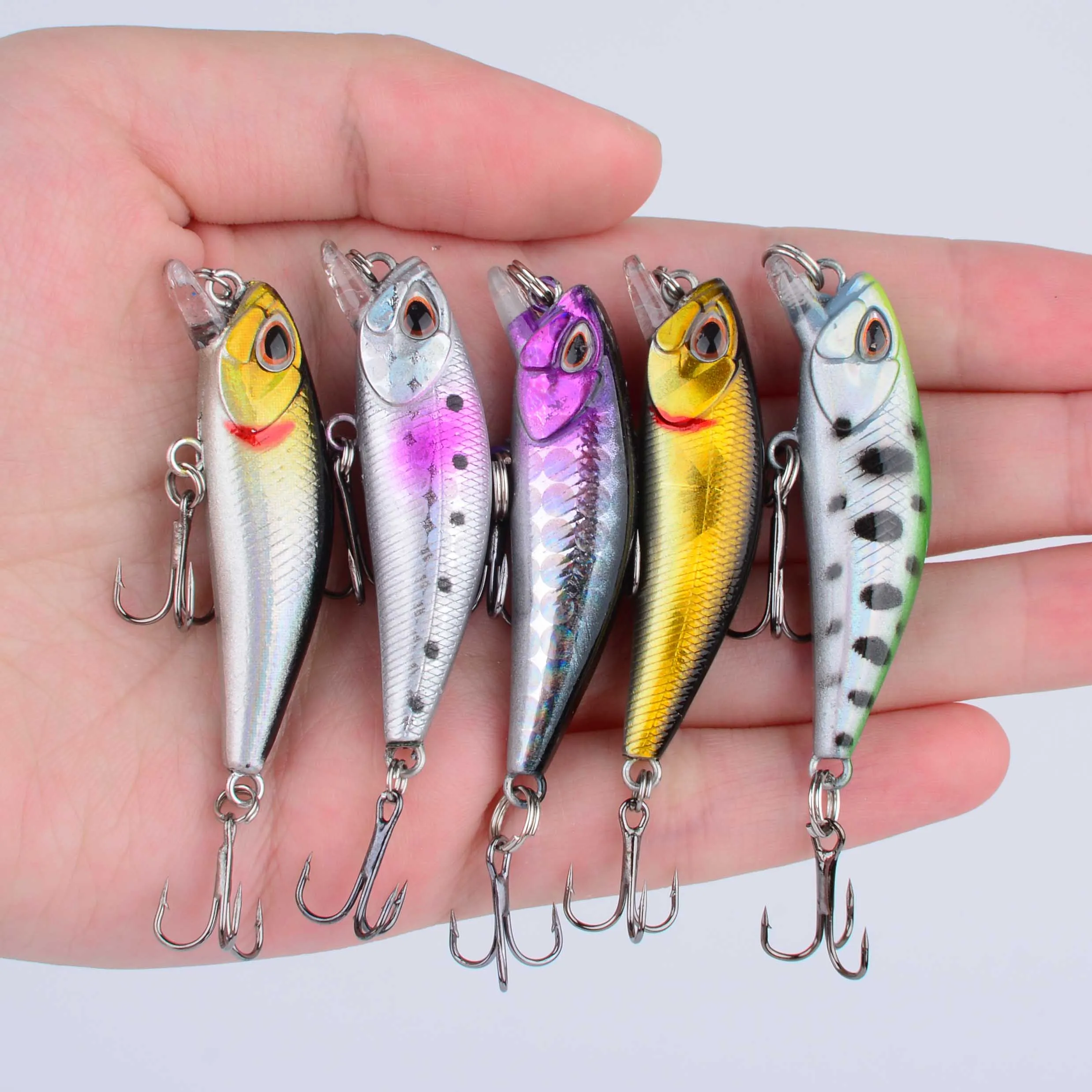 5 uds Mini Minnow Señuelos de Pesca Wobblers hundimiento lento cebo duro de plástico Artificial Crankbait Jerkbait Pesca aparejos de lubina