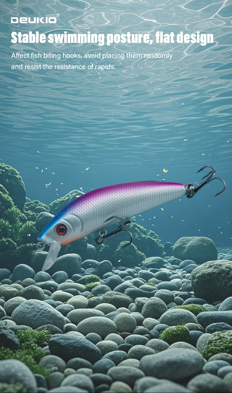4: Diseño de postura de natación estable y plana, que resiste la resistencia de los rápidos y evita el impacto del balanceo aleatorio en los anzuelos para morder peces.