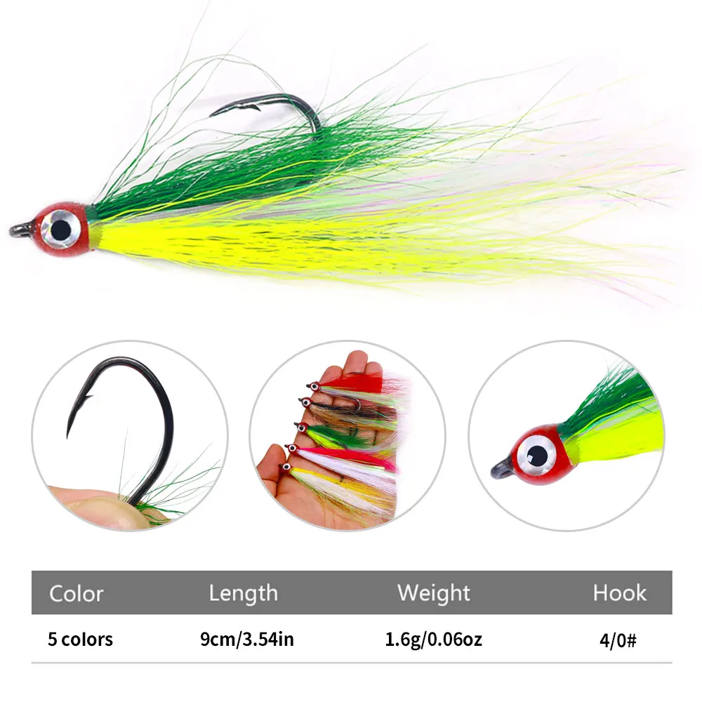 5 uds moscas de pesca con mosca Streamer Bucktail Teasers anzuelo de pesca anzuelos para moscas trucha salmón lubina Señuelos de pesca con mosca herramientas de aparejos de pesca