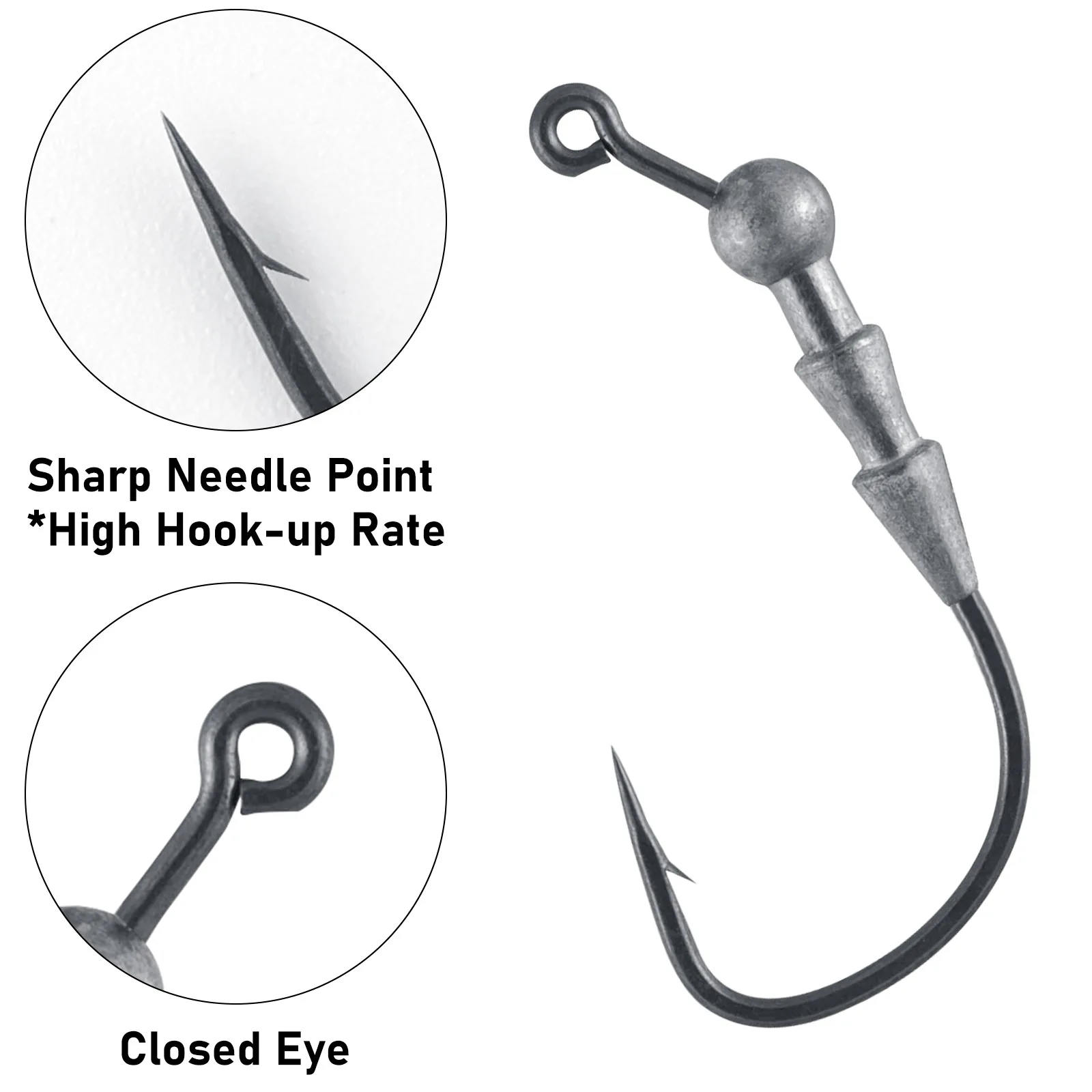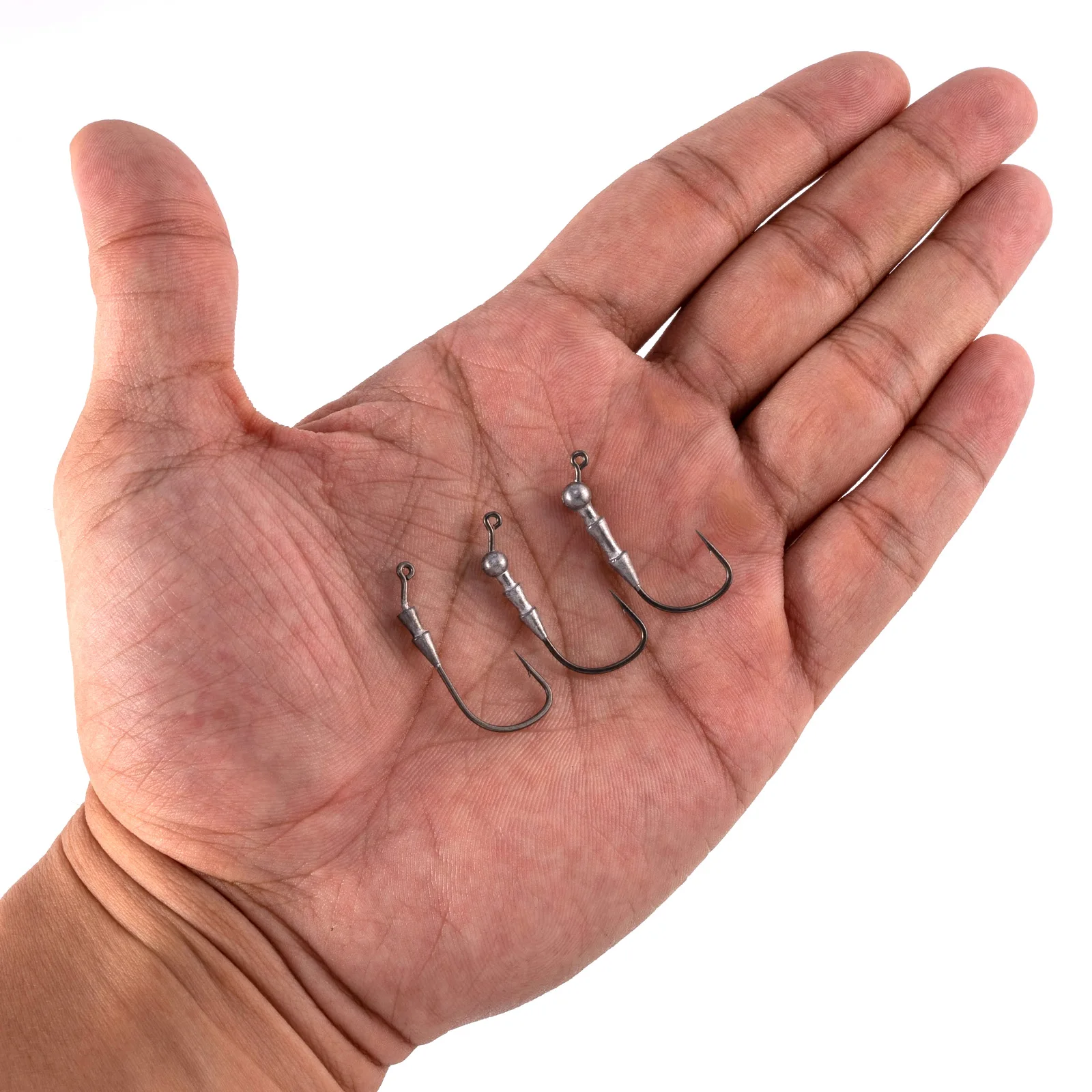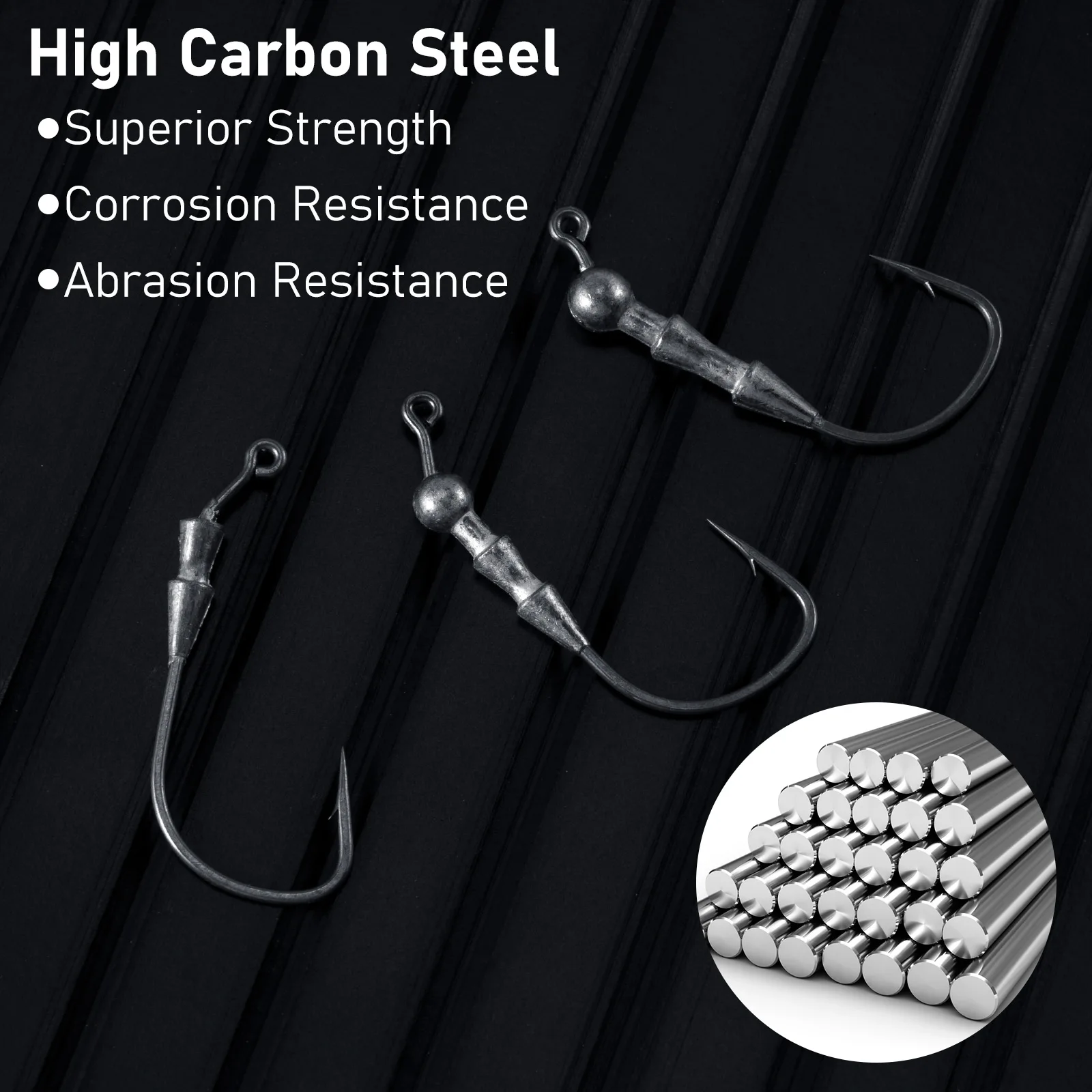 Amplia aplicación: el soporte de cuello ayudará a mantener el cebo fijo, lo que hace que estos anzuelos sean compatibles con una amplia gama de cebos blandos, incluidos cebos de baño con cola de remo, cangrejos o cebos de sombra, y se puede usar para capturar múltiples especies de agua dulce salada como lubina, trucha, tipo de pez y salmón.
