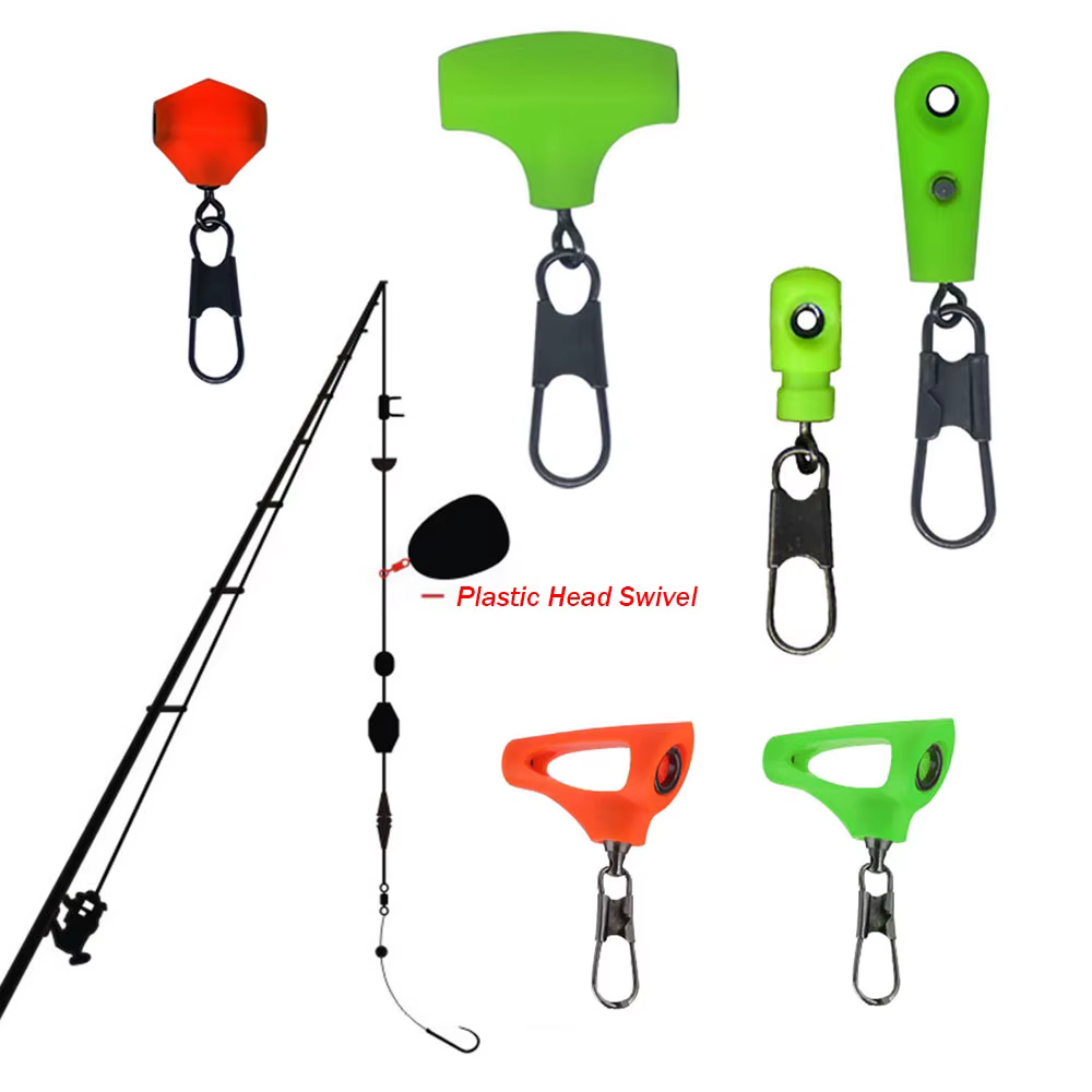 2.Chanclas de hilo de pescar / flotador Conector de clip de vástago de gancho Giratorio, para sujetar un peso/peso deslizante al hilo principal mientras se pesca.