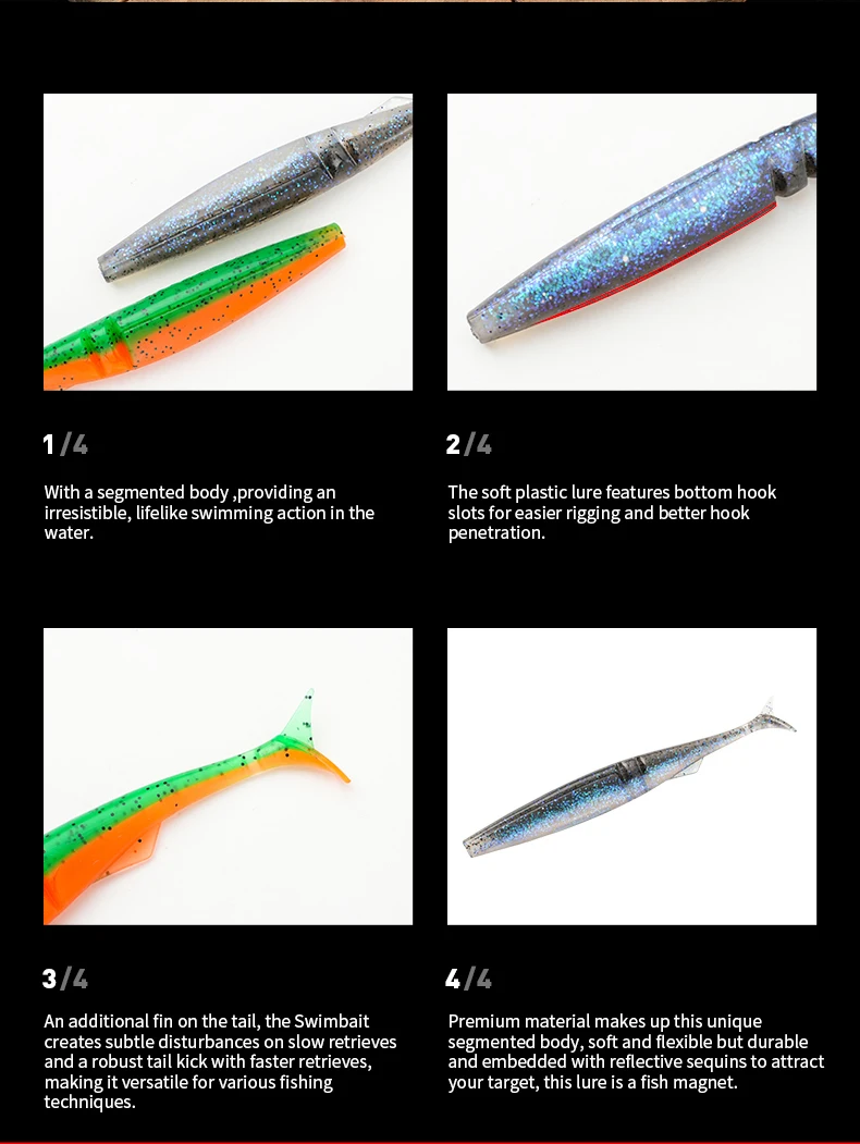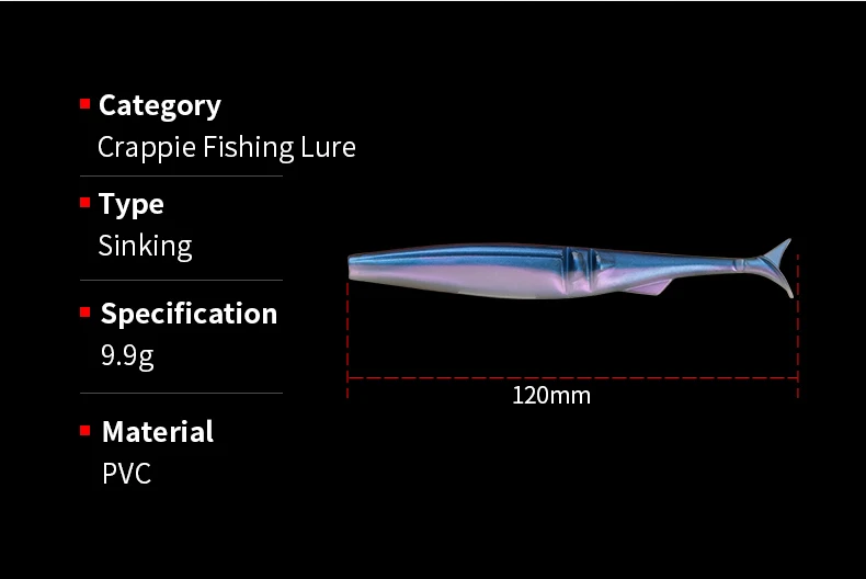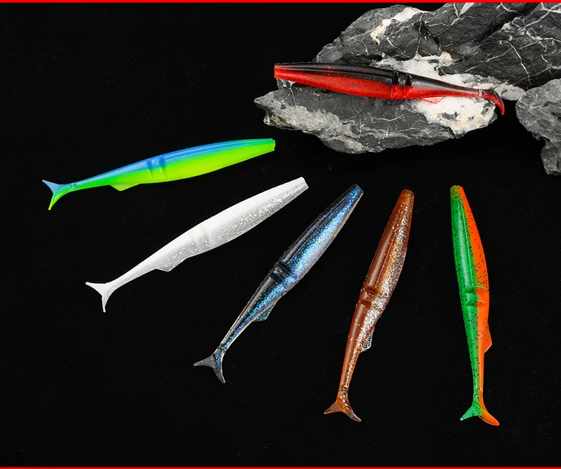 5 uds/pkt señuelo suave de pesca 120mm 9,9g cebo de cola en T de plástico gusano Artificial Swimbait