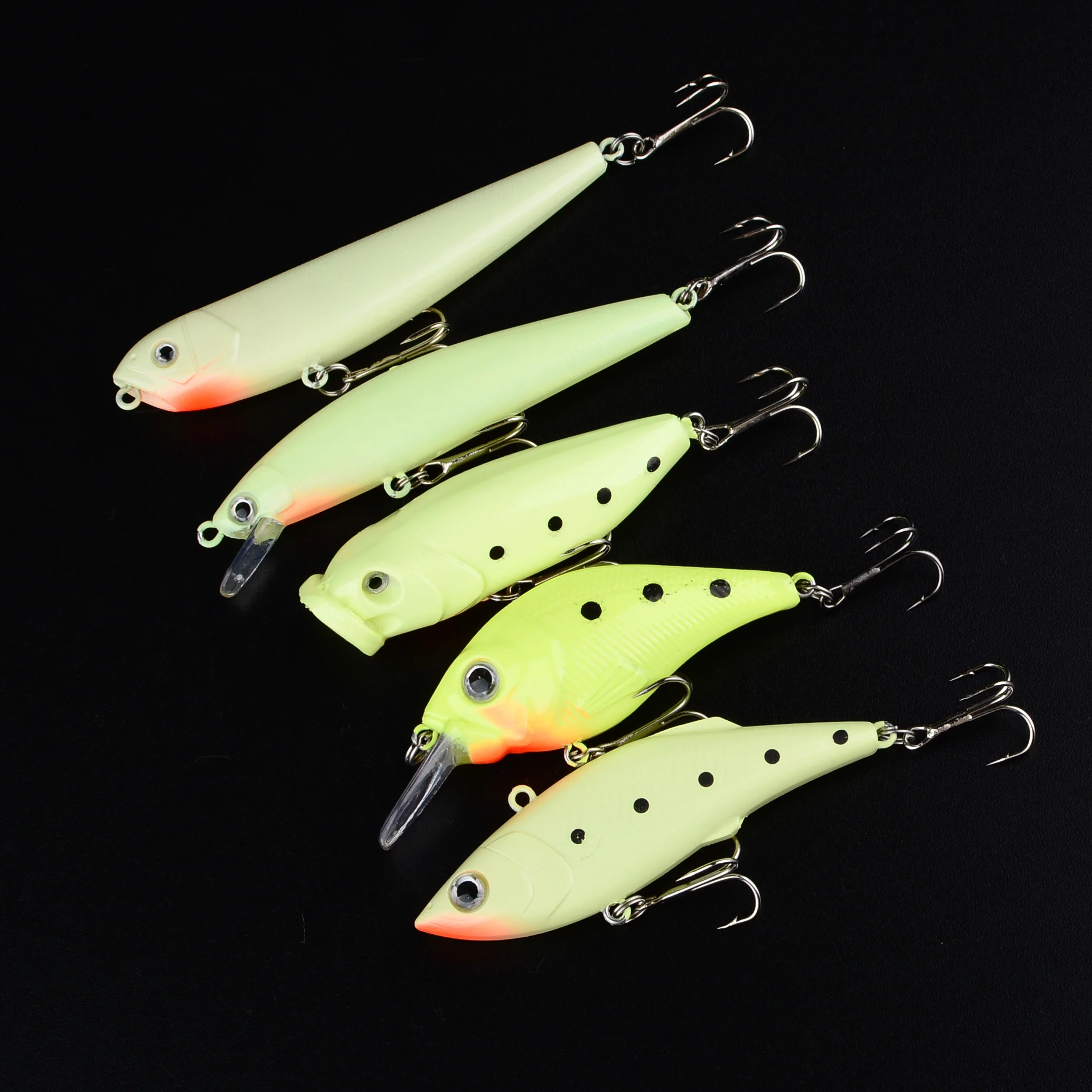5 uds señuelo de Pesca luminoso brillo Popper Minnow Crankbait VIB lápiz Wobblers cebo Artificial duro Lucio Pesca Isca