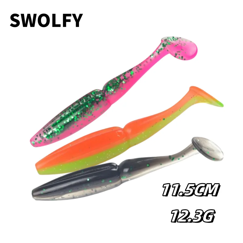 5 uds señuelo suave cebo de silicona 11,5 cm 12,3g anzuelo de manivela Jig cola grande señuelo de pesca Artificial aparejos de pesca de mar